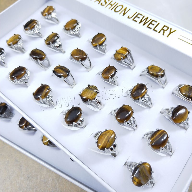 Edelstein Zink Legierung Fingerring, Zinklegierung, mit Tigerauge, Modeschmuck & für Frau, 17-20, 100PCs/Menge, verkauft von Menge