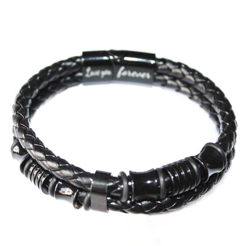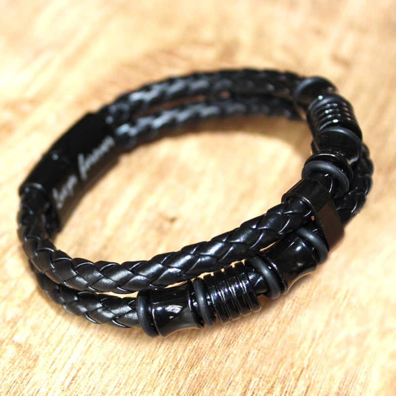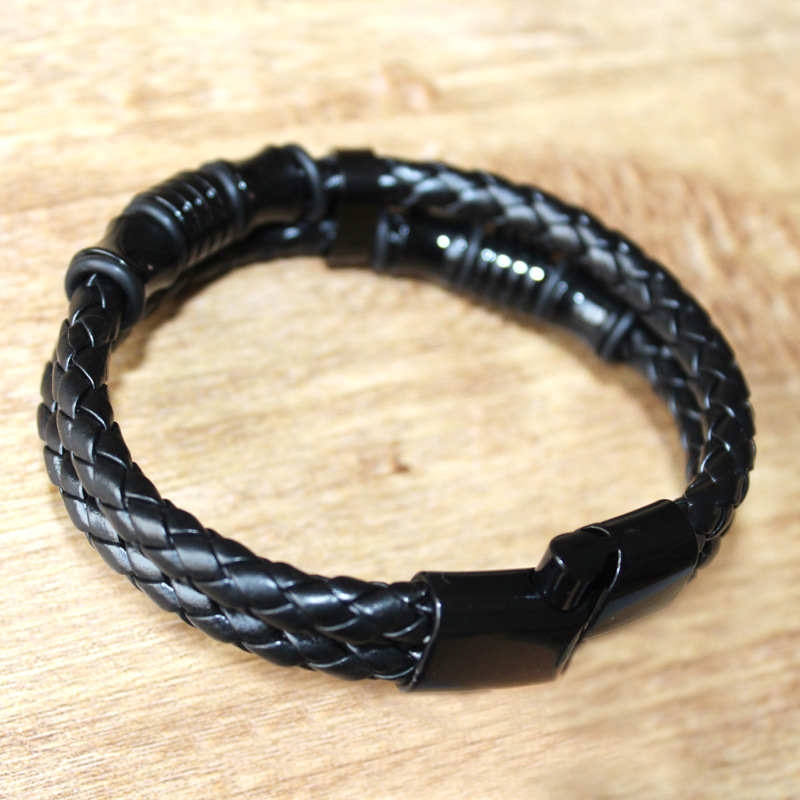 304 Edelstahl Armband, mit PU Leder, handgemacht, Doppelschicht & verschiedene Größen vorhanden & für den Menschen, schwarz, verkauft von PC