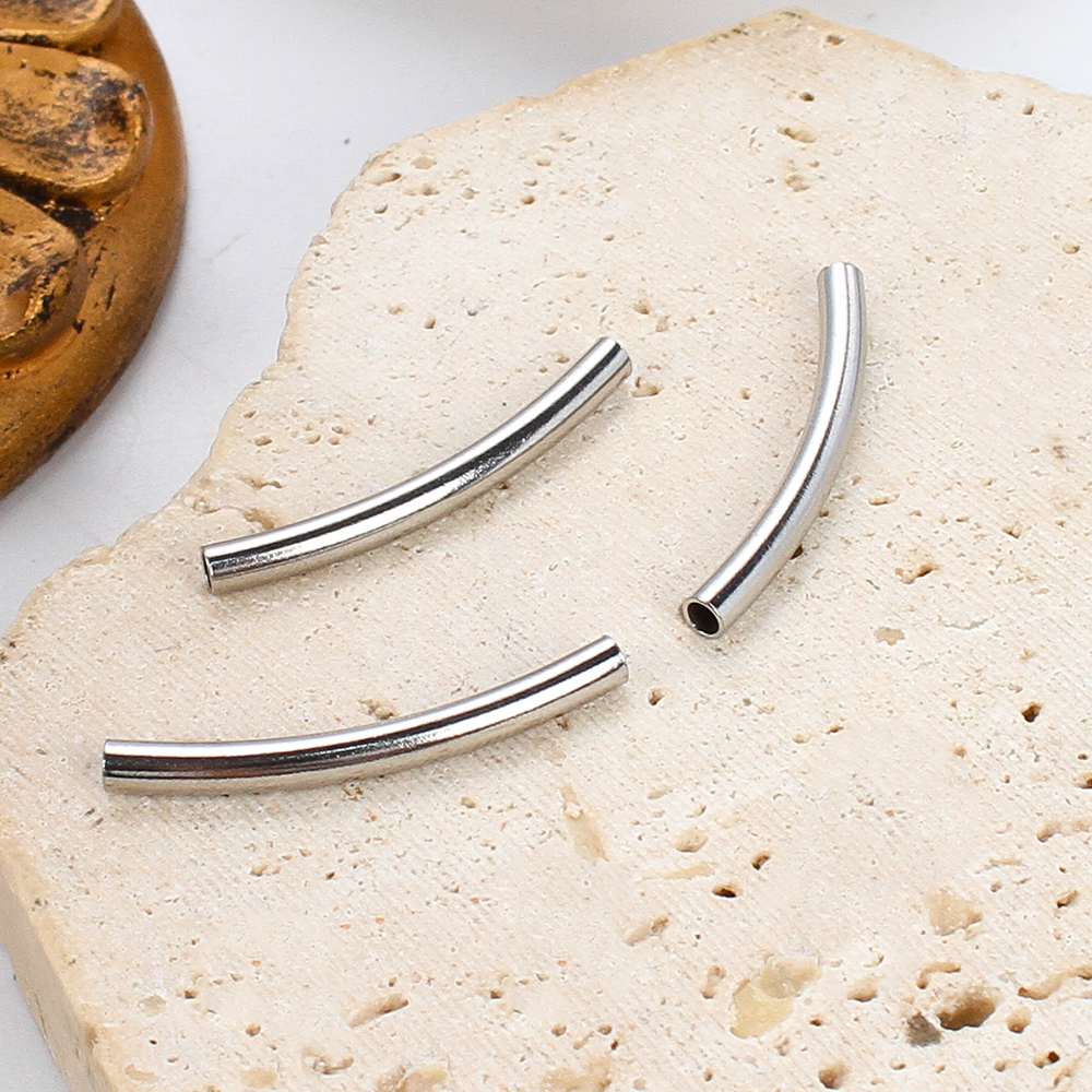 304 Edelstahl gebogene Rohr Perlen, silberfarben plattiert, DIY, Silberfarbe, 30.1x3.32x4.15mm, verkauft von PC