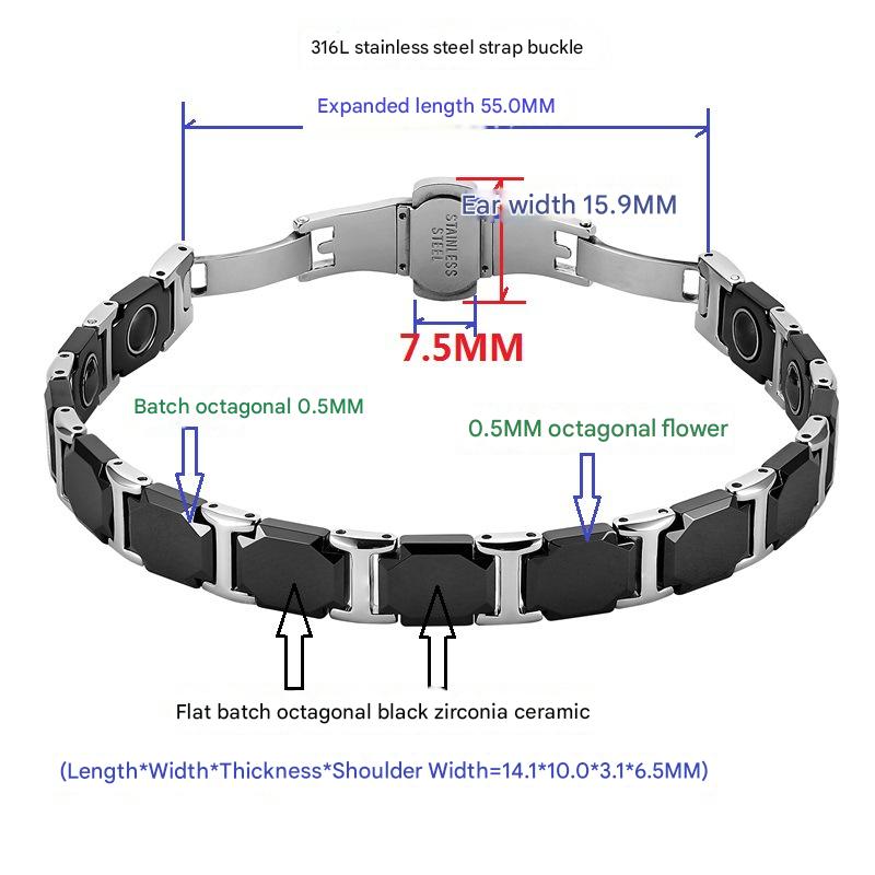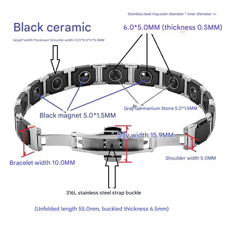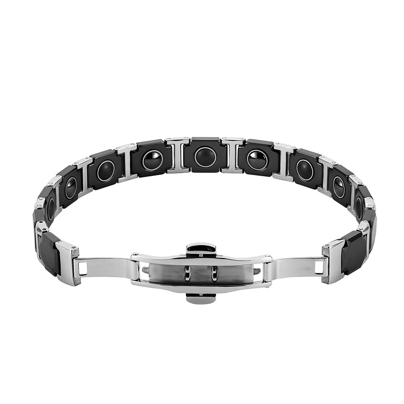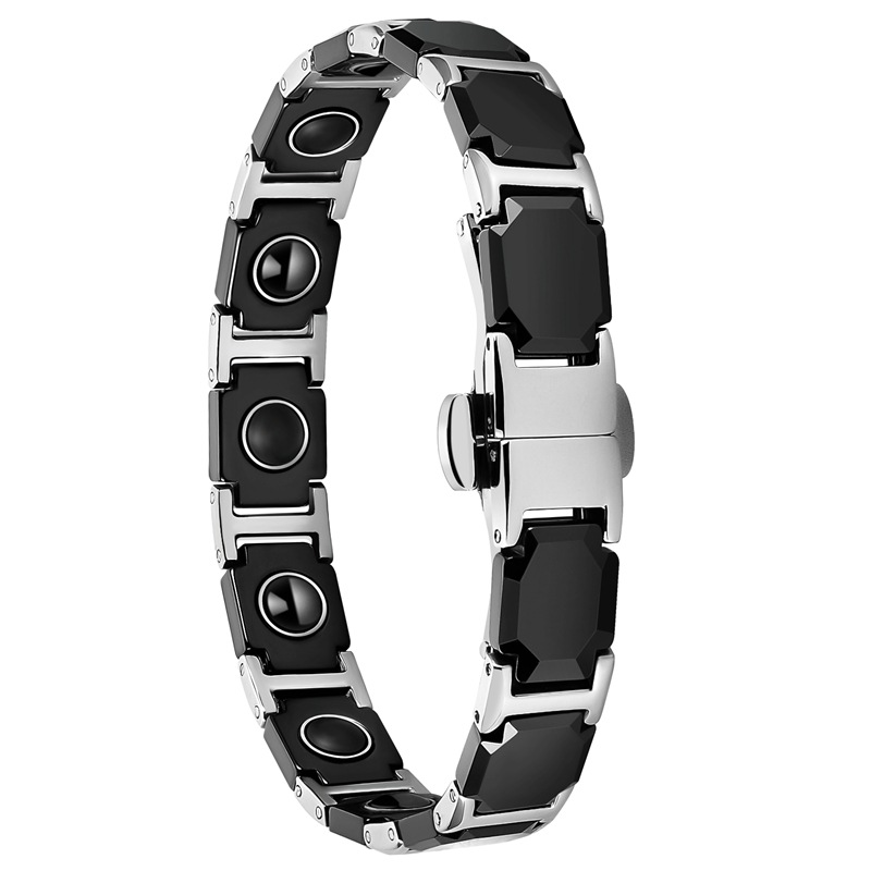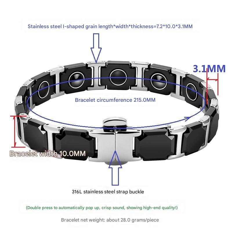 316 L Edelstahl Armband, mit Schwarz+Magnet+Stein & Porzellan, poliert, Modeschmuck & für Frau, Länge:ca. 8.5 ZollInch, verkauft von PC