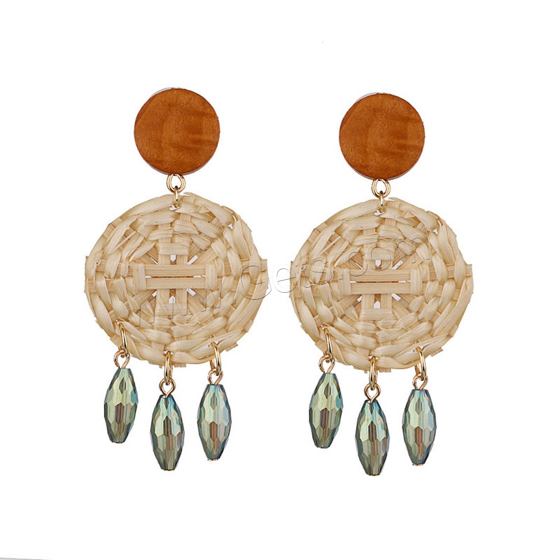 Rohrstock Tropfen Ohrring, mit Glas & Holz & Zinklegierung, Edelstahl Stecker, flache Runde, goldfarben plattiert, für Frau & facettierte, 33x67mm, verkauft von Paar