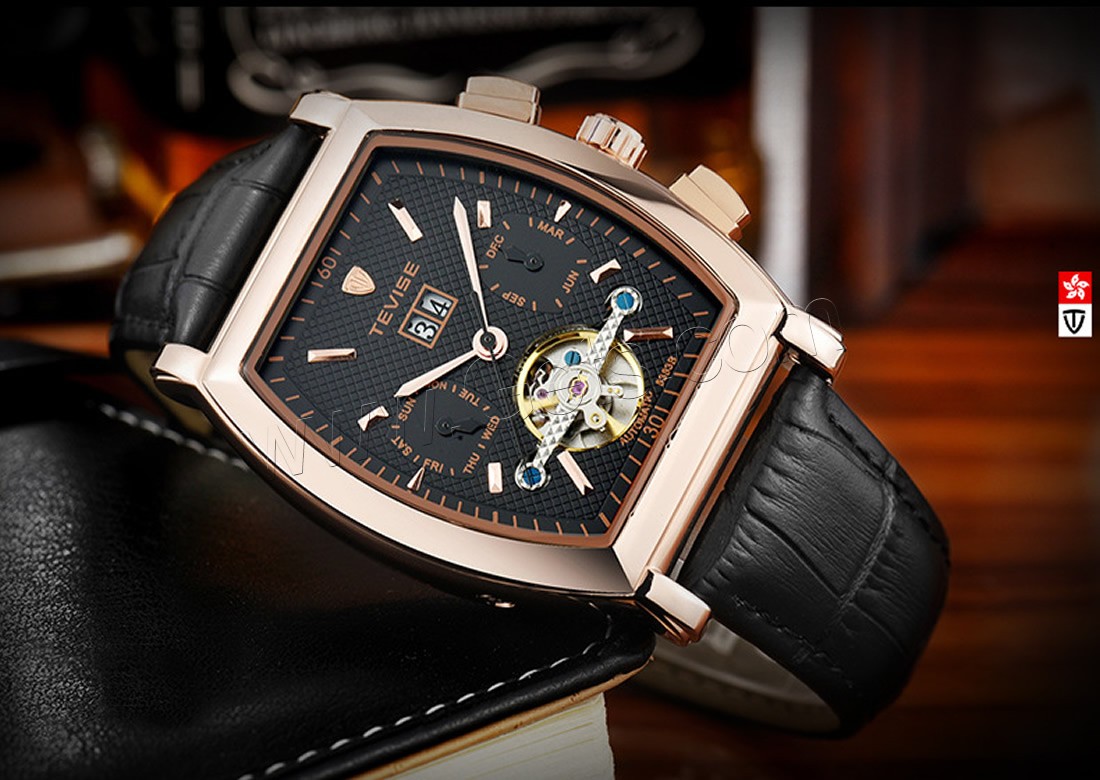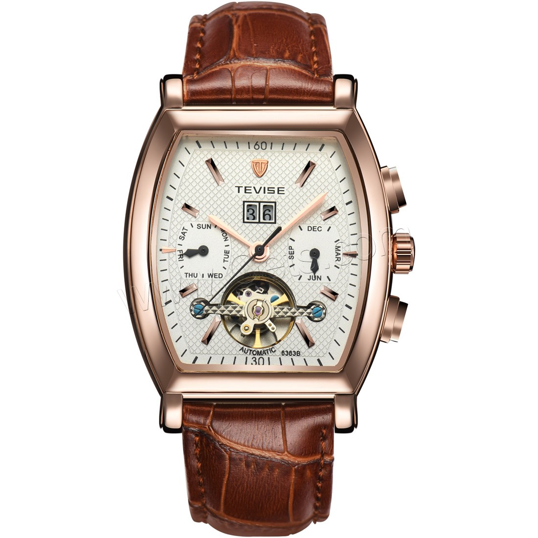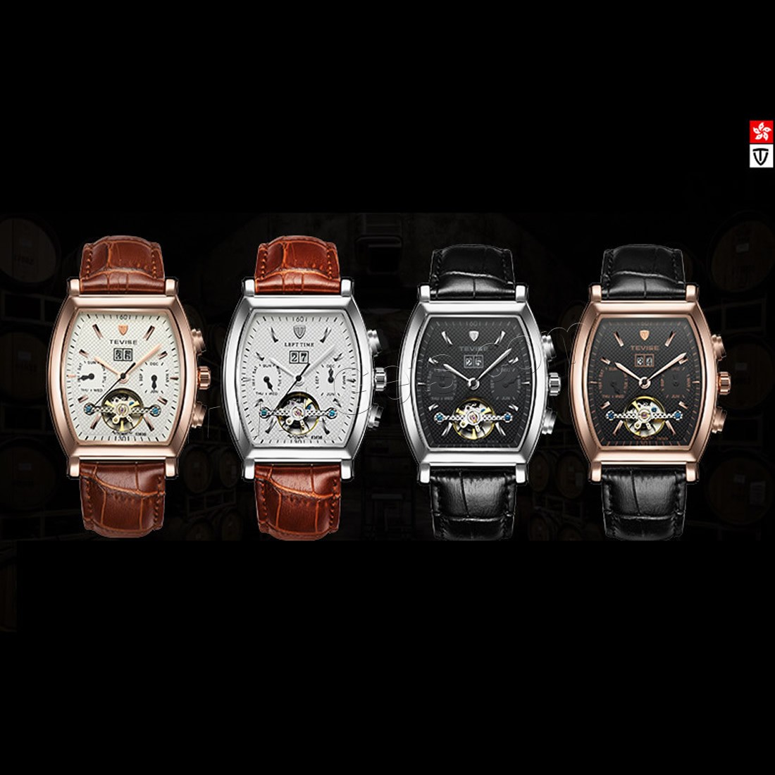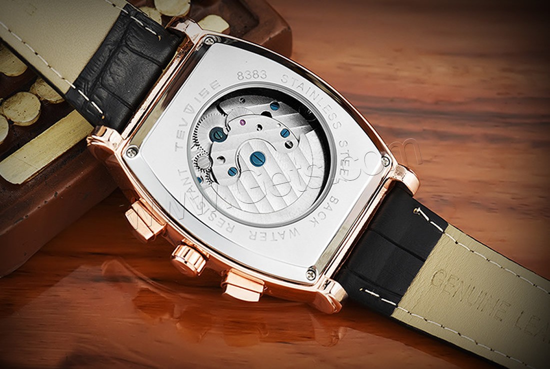 TEVISE® Uhrenkollektion, Kuhhaut, mit Zinklegierung Zifferblatt & Edelstahl, plattiert, 30 m wasserdicht & stem-Winder & einstellbar & für den Menschen, keine, 49x42x14mm, Länge:ca. 7.8 ZollInch, verkauft von Strang