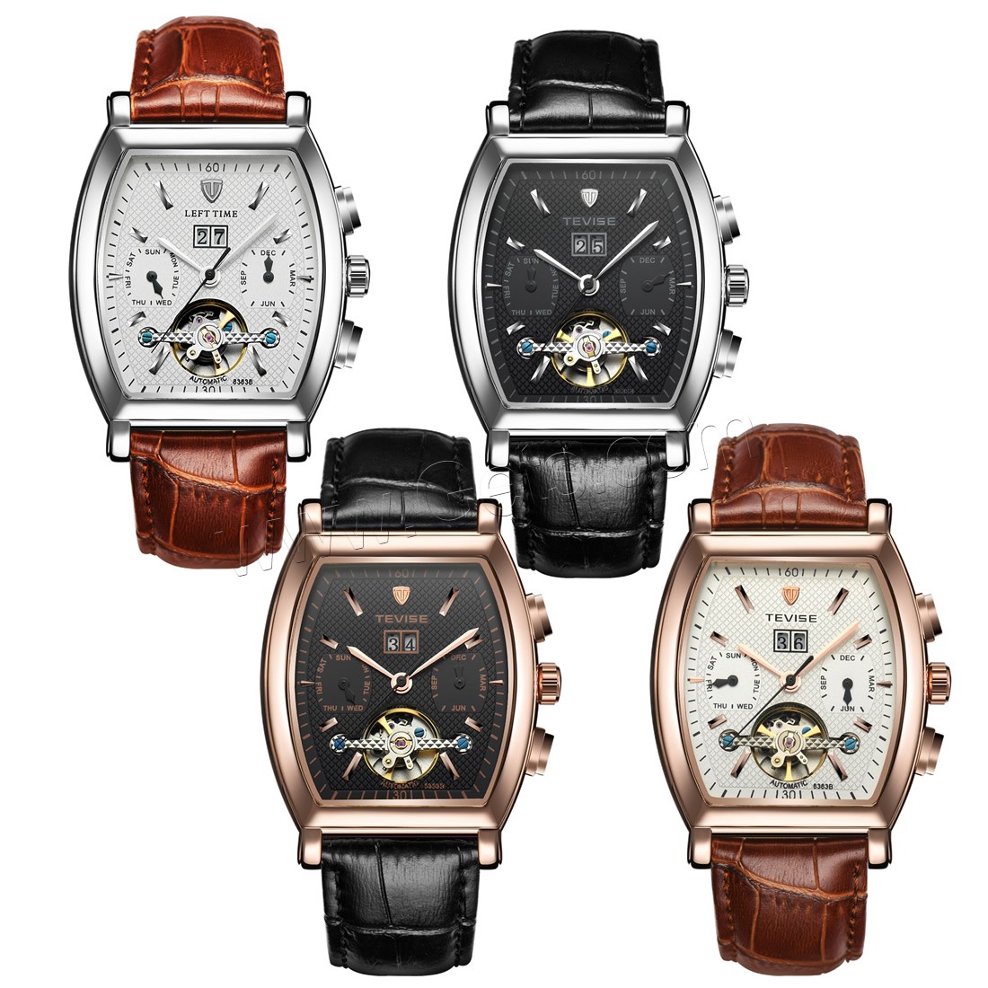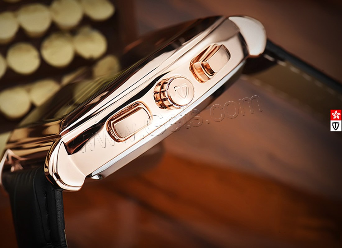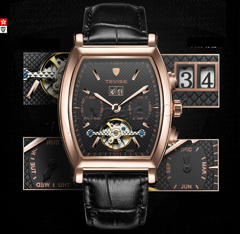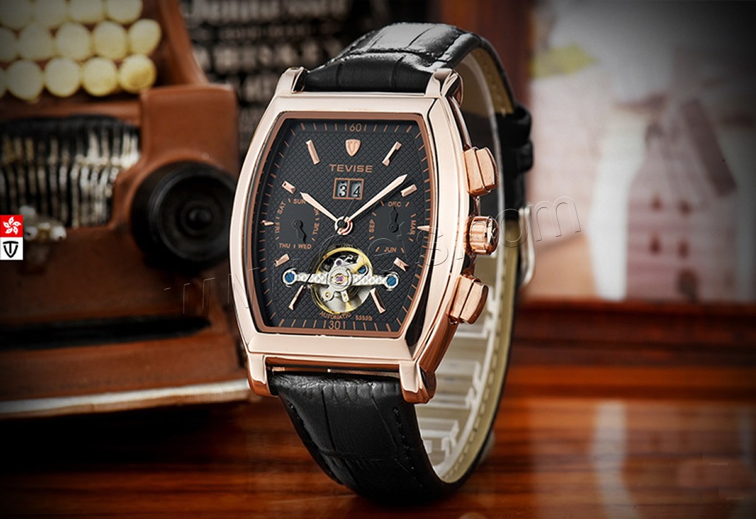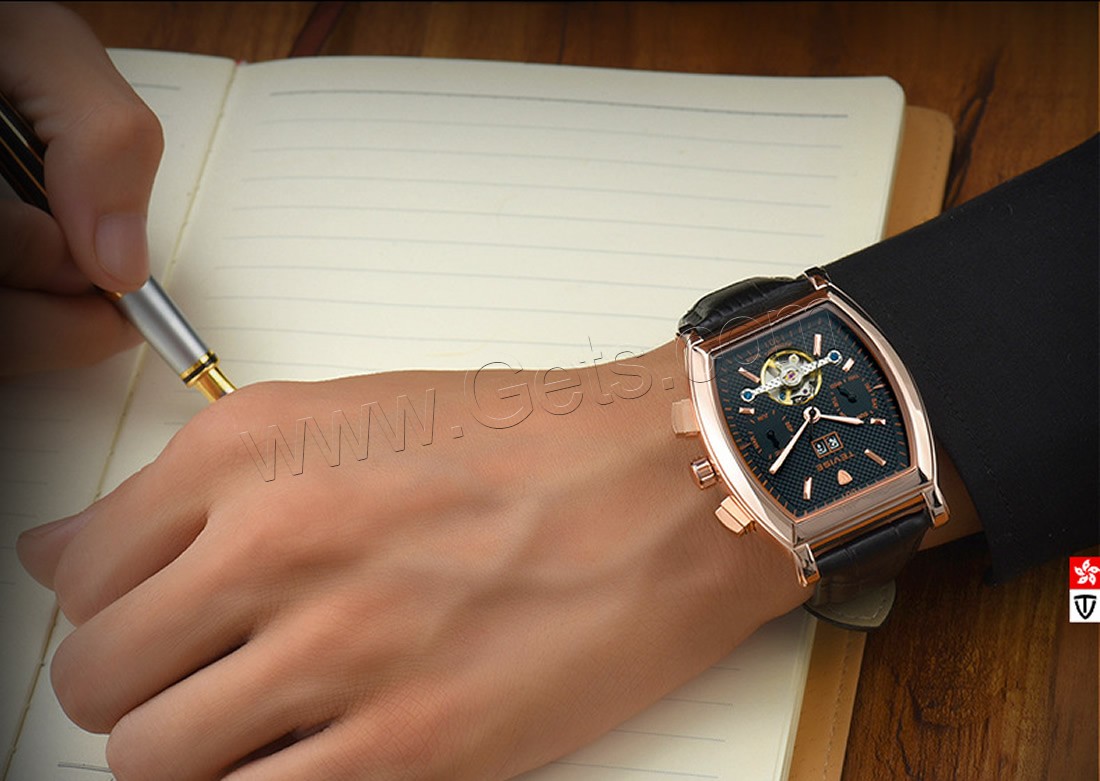 TEVISE® Uhrenkollektion, Kuhhaut, mit Zinklegierung Zifferblatt & Edelstahl, plattiert, 30 m wasserdicht & stem-Winder & einstellbar & für den Menschen, keine, 49x42x14mm, Länge:ca. 7.8 ZollInch, verkauft von Strang