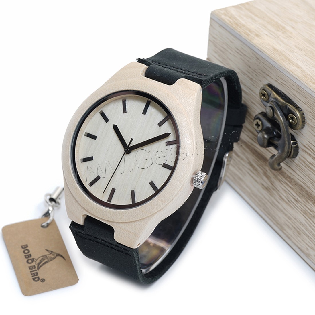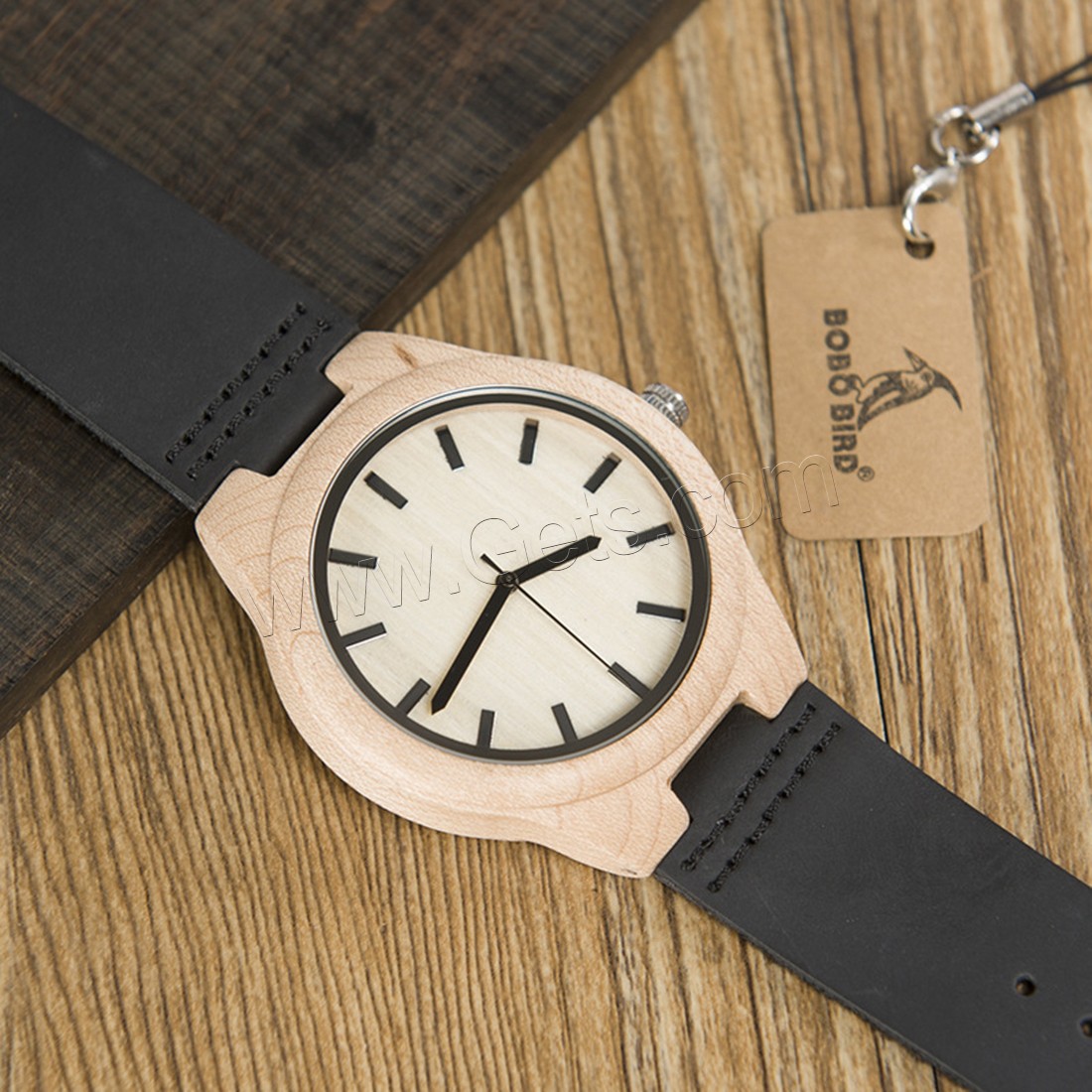 BOBOBIRD® Unisex Schmuckuhren, PU Leder, mit Zifferblatt aus Holz & Glas & Edelstahl, japanische Bewegung, Lebenswasserbeständig & einstellbar, originale Farbe, 45mm, 22mm, Länge:ca. 6.5-8.5 ZollInch, verkauft von PC