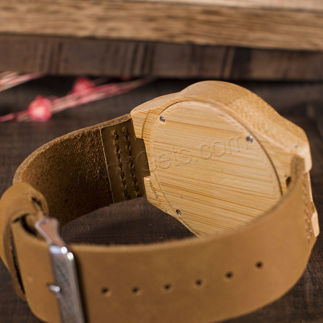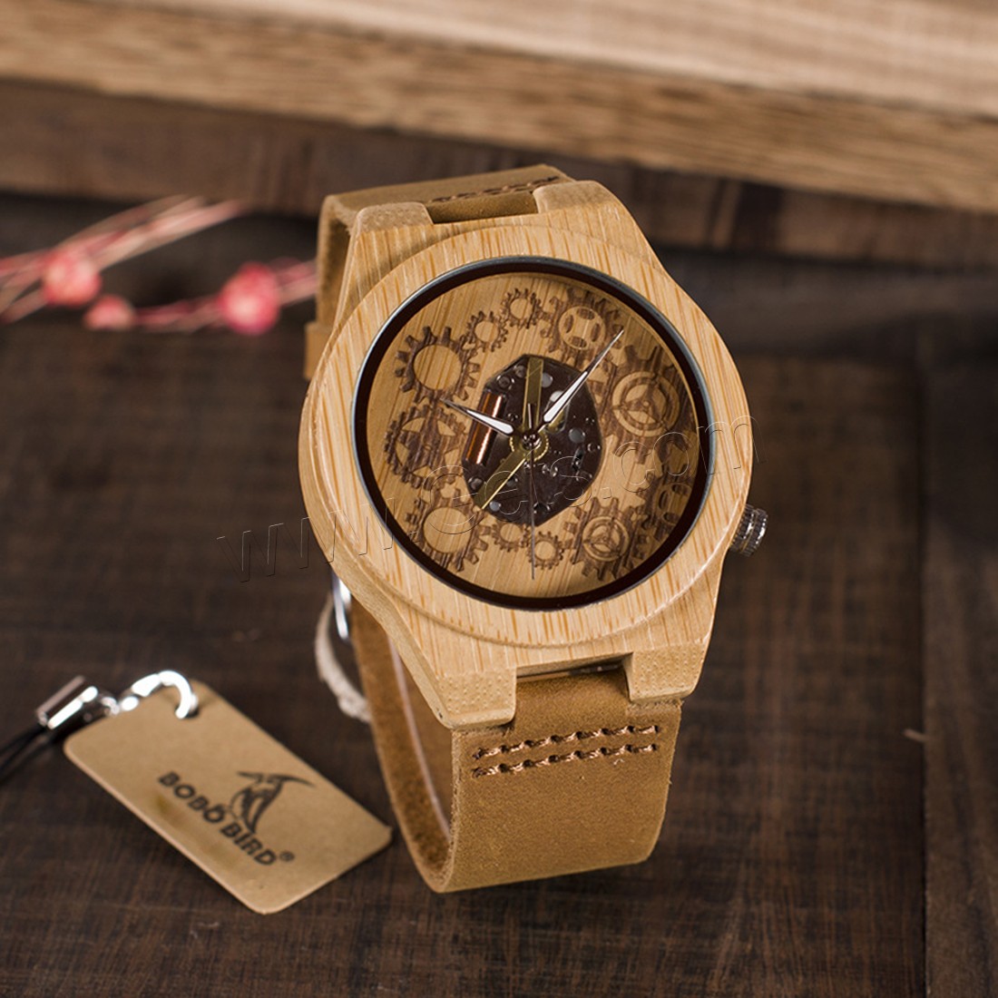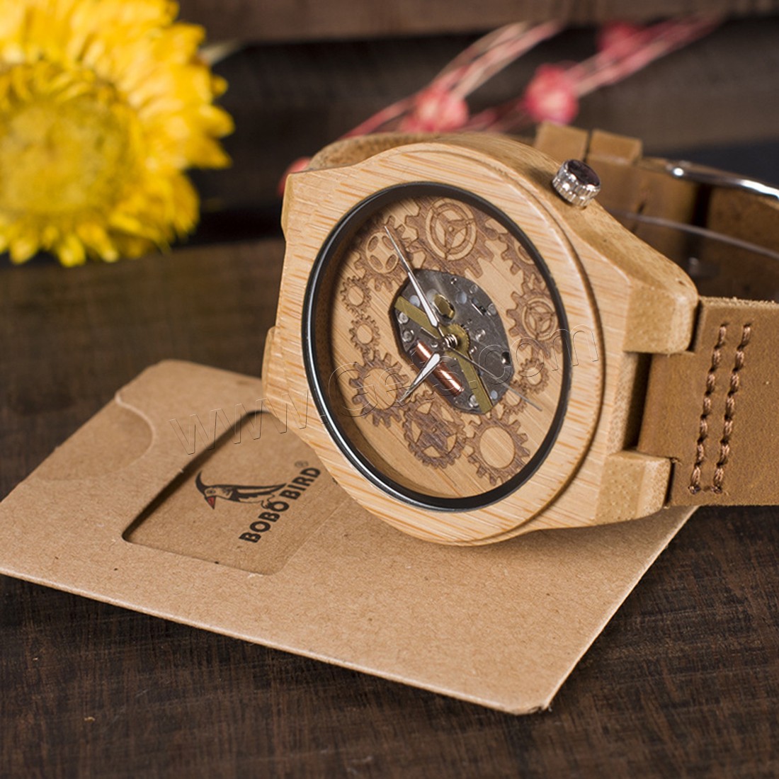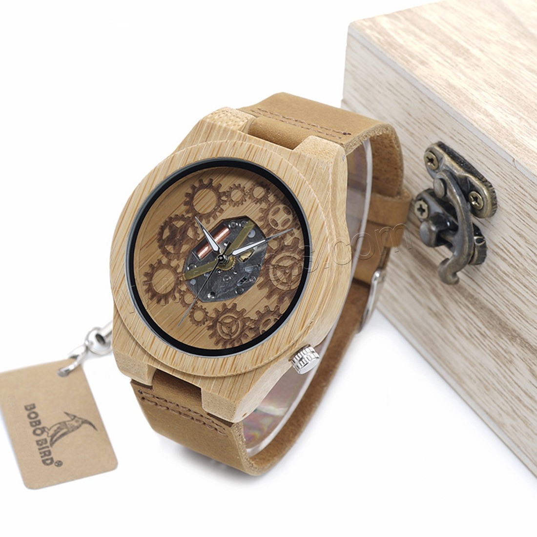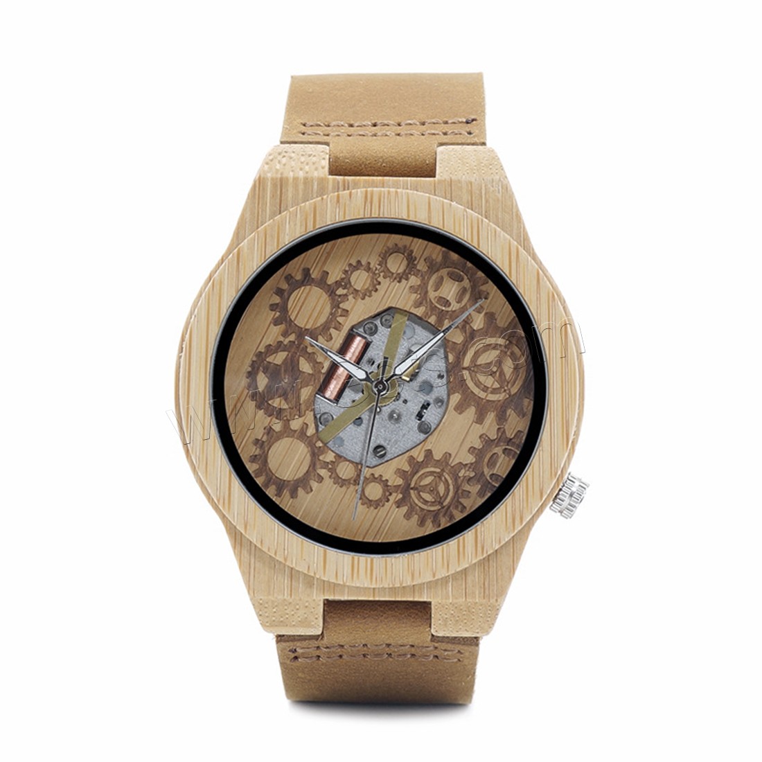 BOBOBIRD® Unisex Schmuckuhren, PU Leder, mit Zifferblatt aus Holz & Glas & Edelstahl, japanische Bewegung, Lebenswasserbeständig & einstellbar, originale Farbe, 45mm, 22mm, Länge:ca. 8.5 ZollInch, verkauft von PC