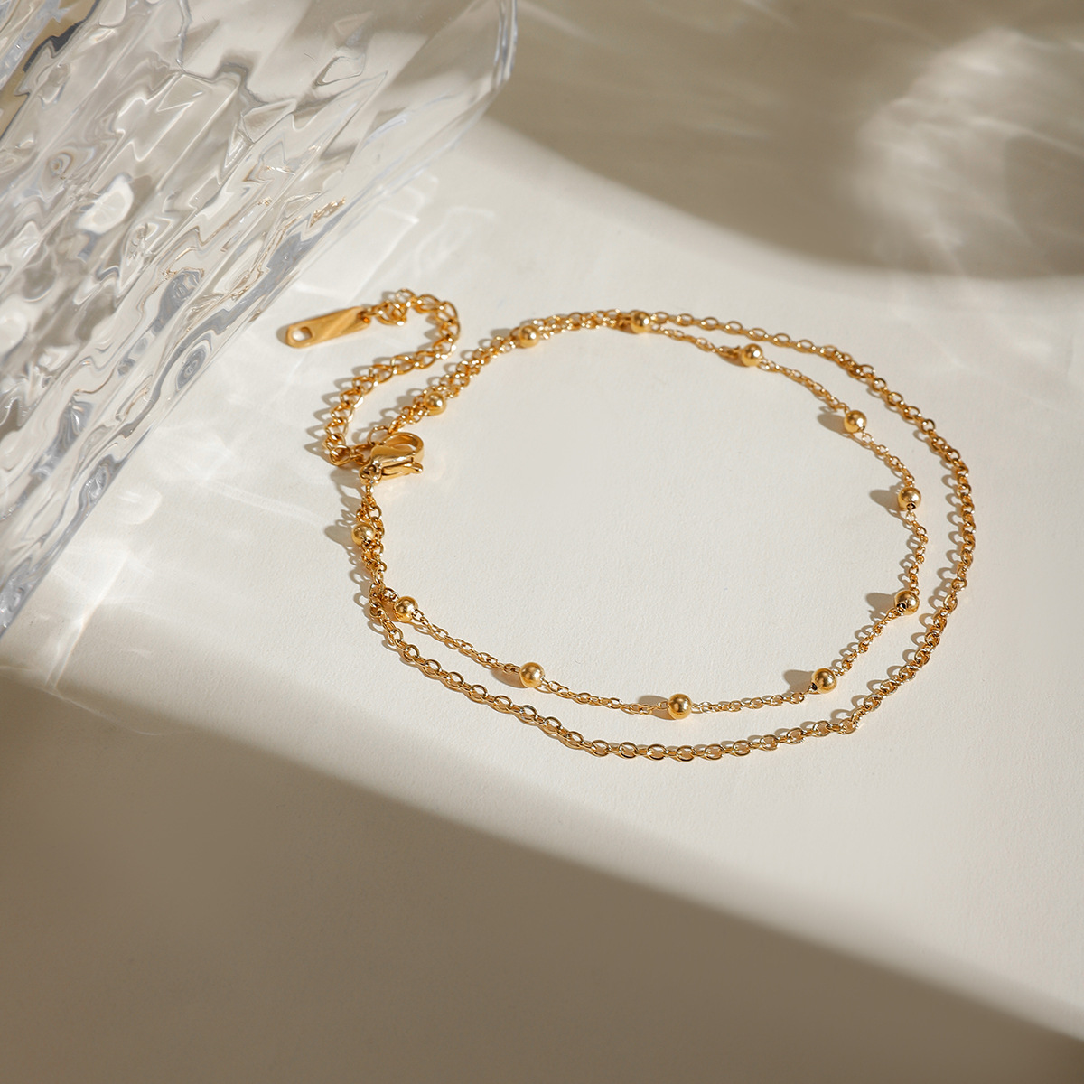 304 Edelstahl Fußkettchen, 18K vergoldet, Doppelschicht & Modeschmuck & für Frau, verkauft von PC