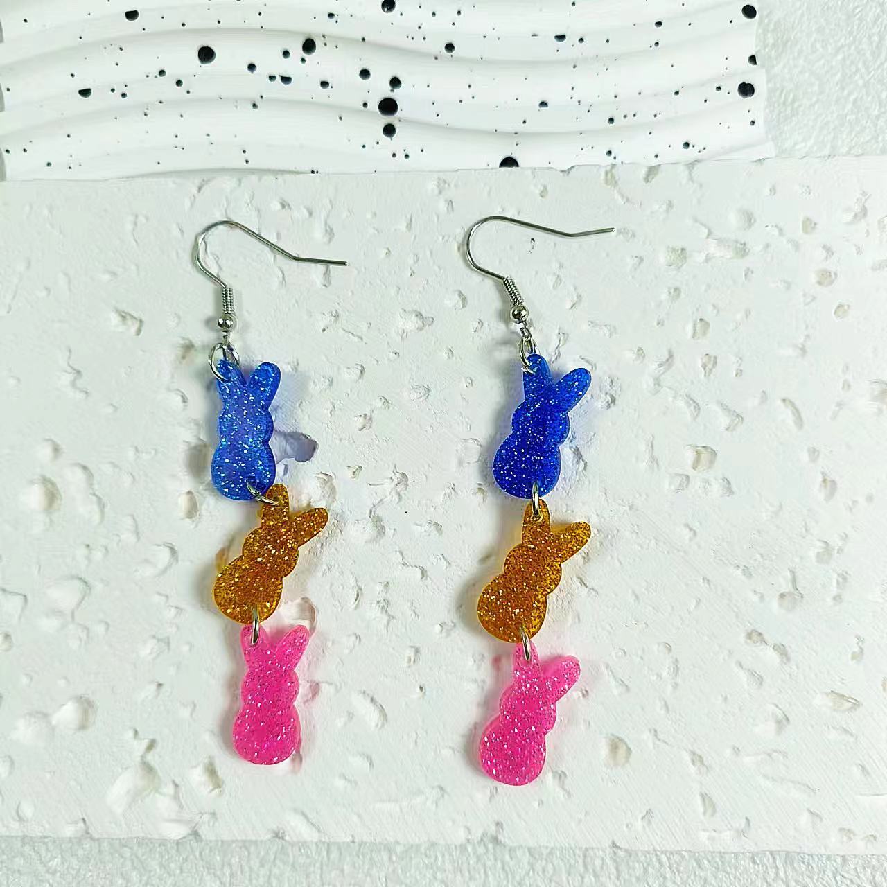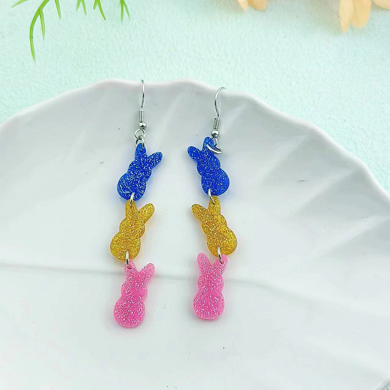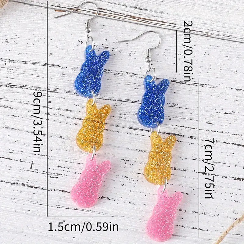 Acryl Tropfen Ohrring, Hase, Modeschmuck & für Frau, farbenfroh, 15x90mm, verkauft von Paar