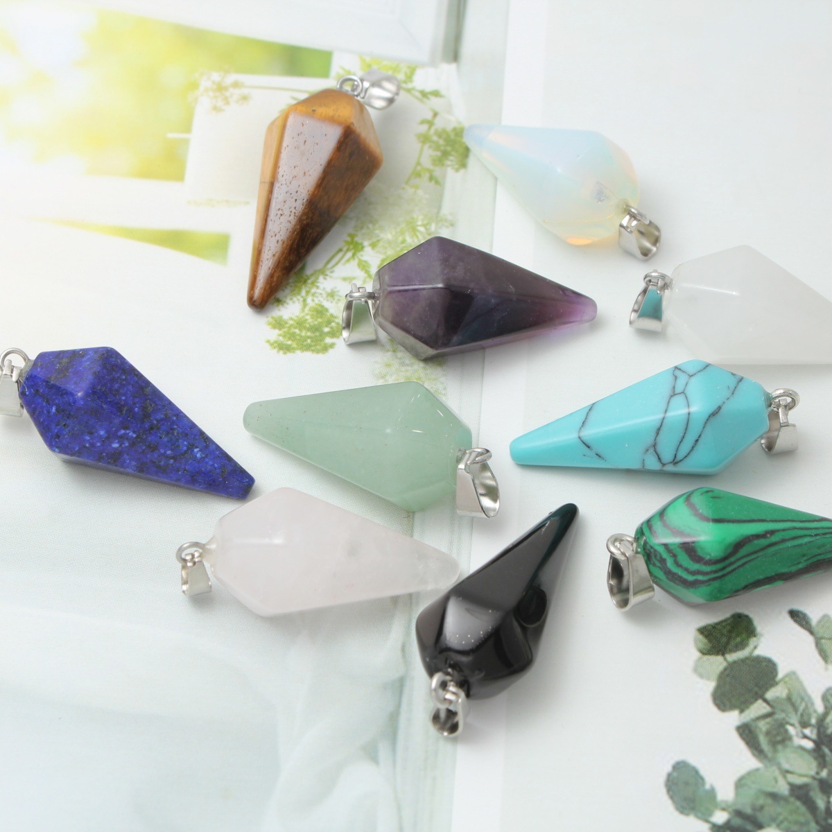 Anhänger aus Zinklegierung und Schmuckstein, Edelstein, mit Zinklegierung, Pendel, Platinfarbe platiniert, verschiedenen Materialien für die Wahl, 13.5x41x10mm, Bohrung:ca. 3x5mm, verkauft von PC