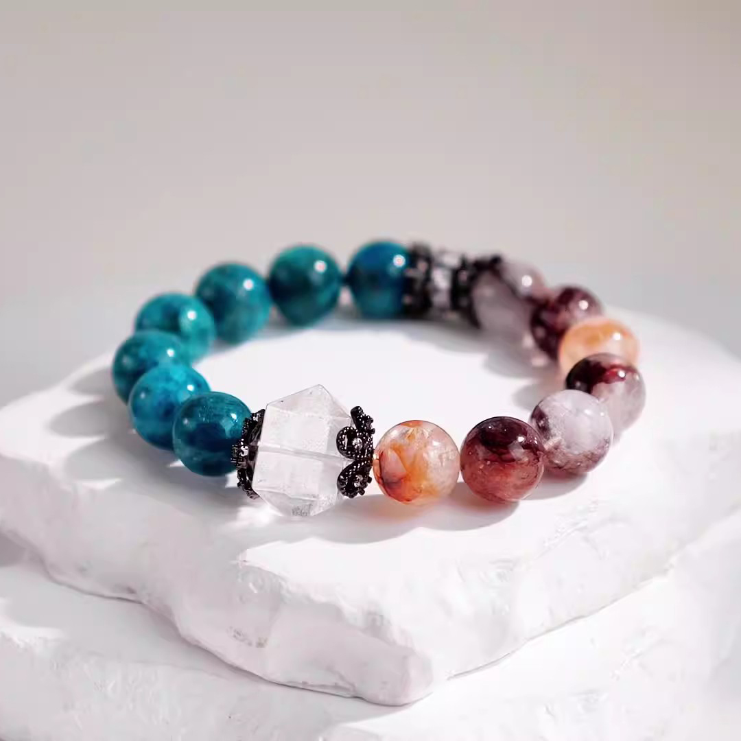 Apatite Armband, mit Roter Marmorkleber Stein & Messing, handgemacht, natürliche & unisex, beads length 12mm, Länge:ca. 7 ZollInch, verkauft von PC