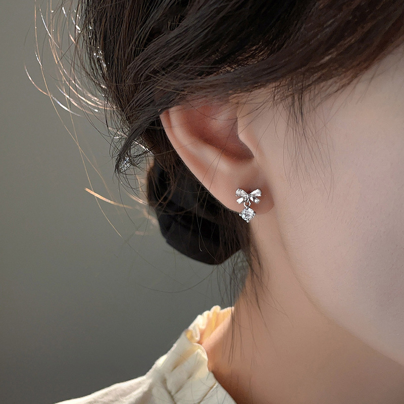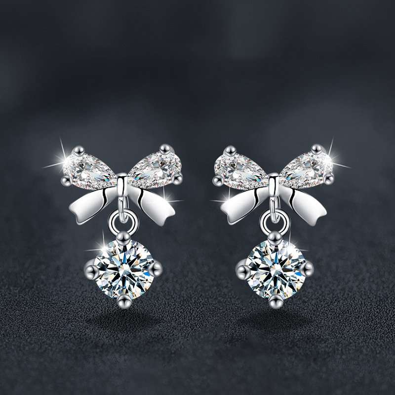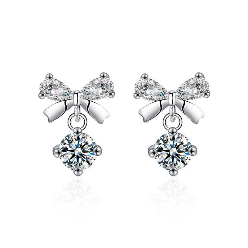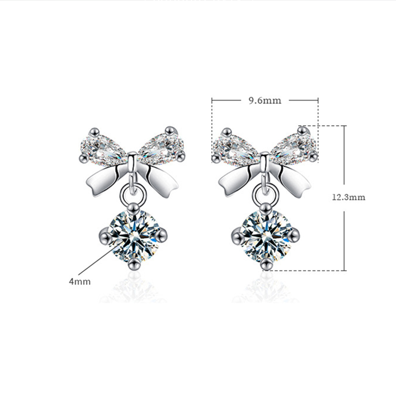 925er Sterling Silber Tropfen Ohrring, mit Moissanite, Schleife, platiniert, Modeschmuck & für Frau, 9.6x12.3mm, verkauft von Paar