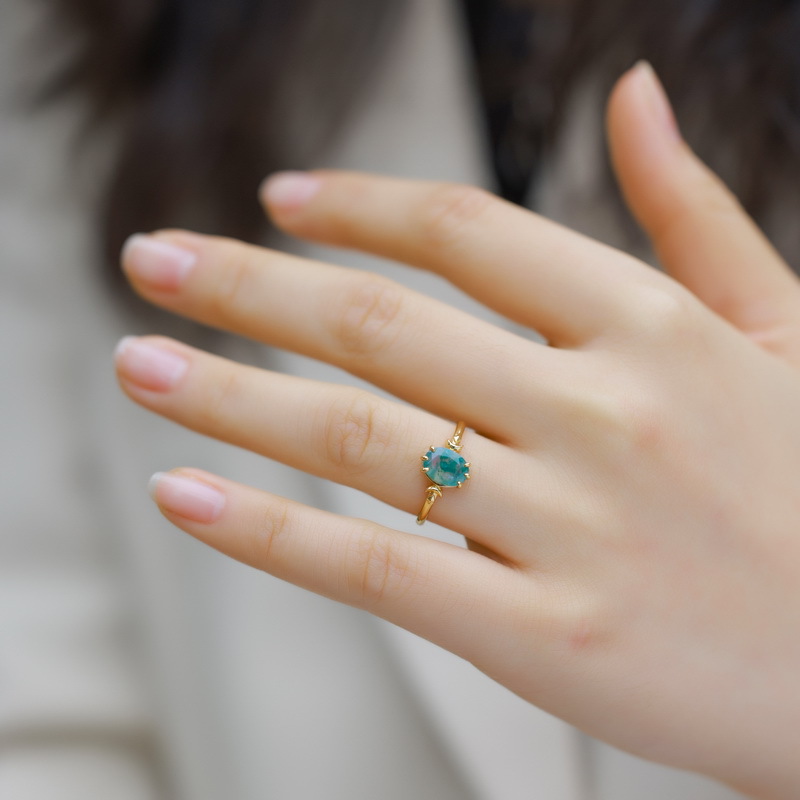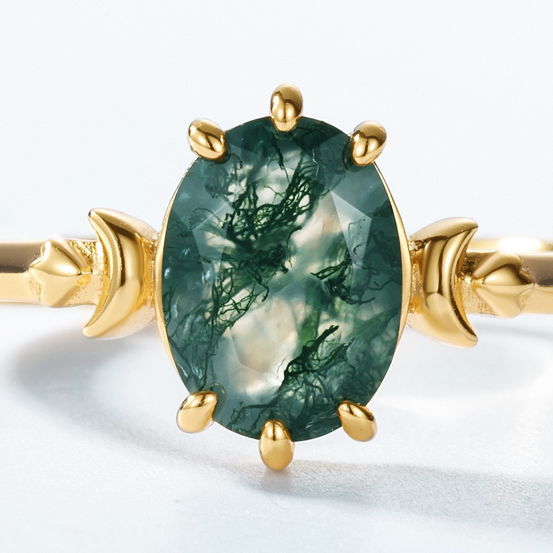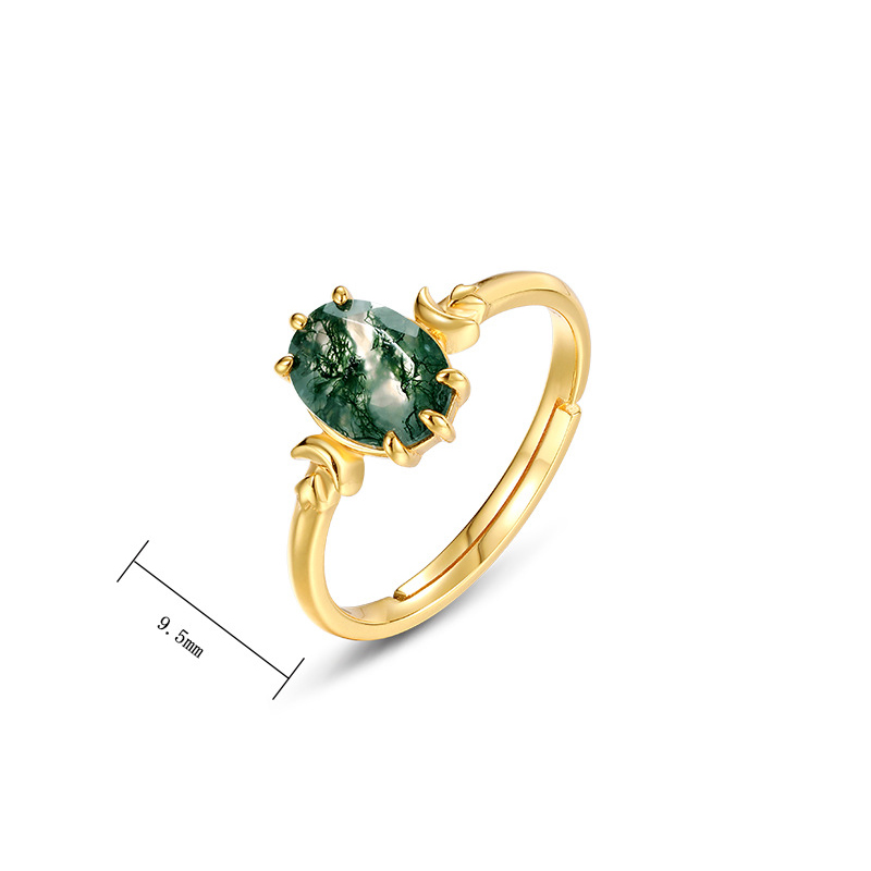 925er Sterling Silber Manschette Fingerring, mit Moos Achat, oval, goldfarben plattiert, Modeschmuck & für Frau, Größe:6, verkauft von PC