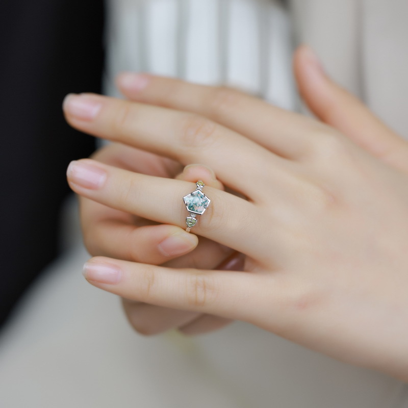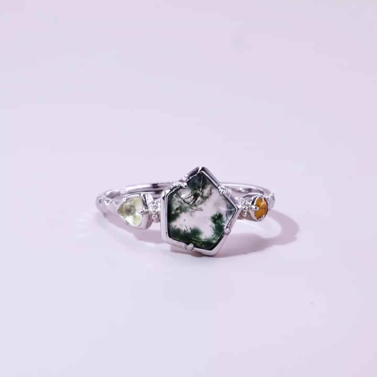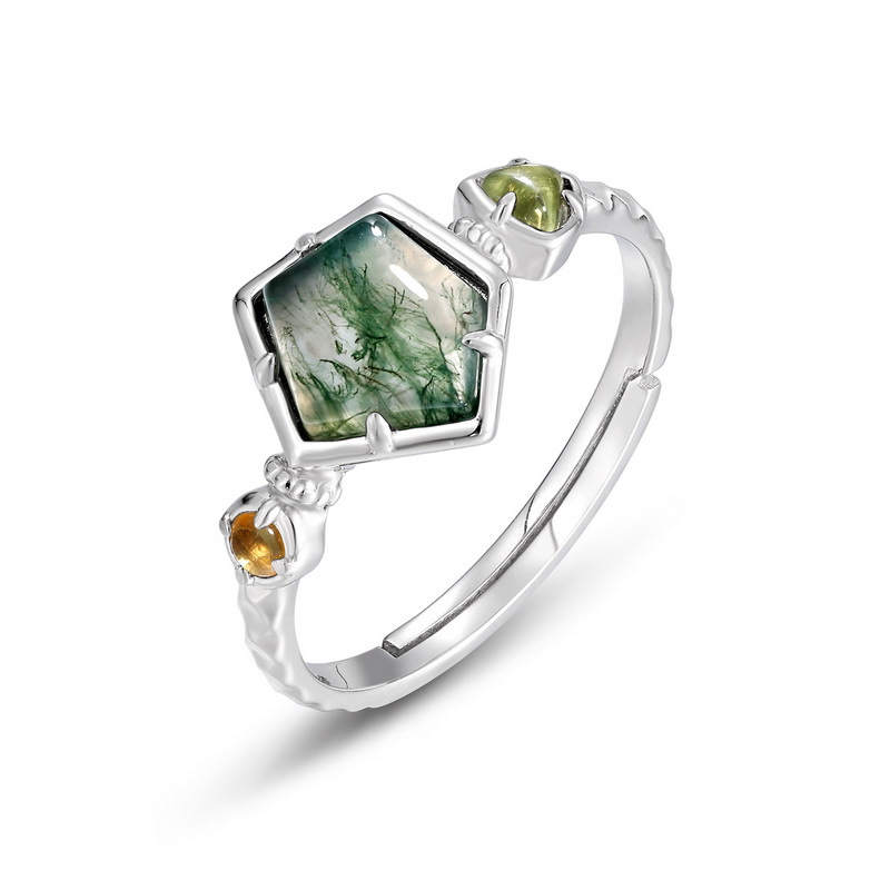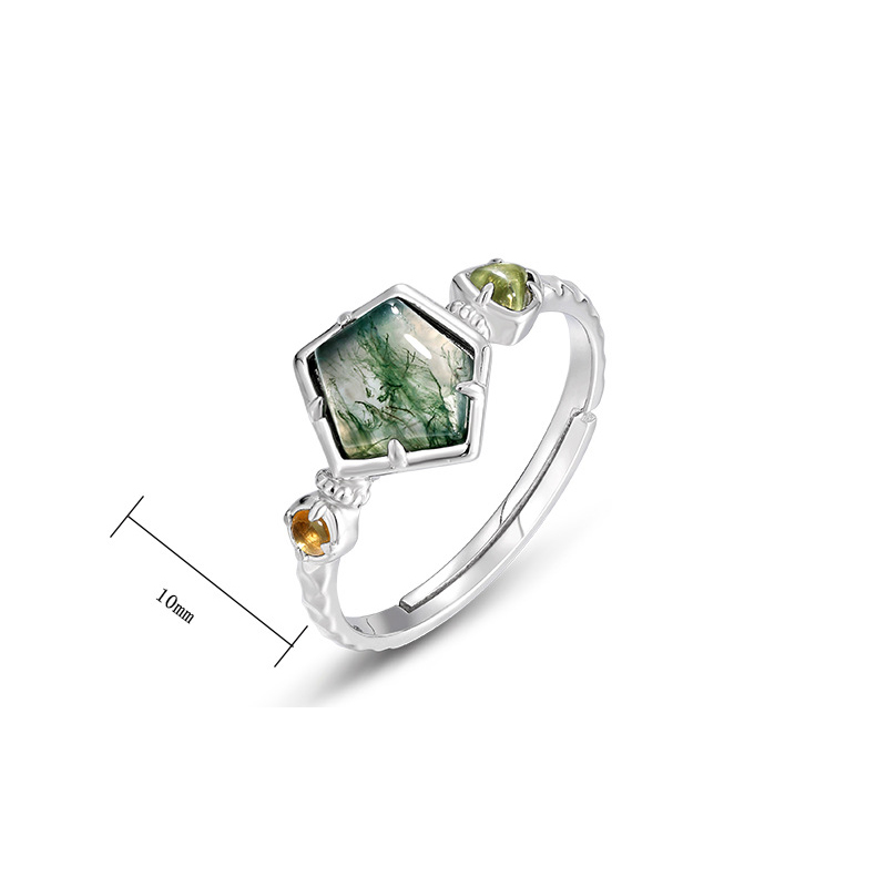 925er Sterling Silber Manschette Fingerring, mit Moos Achat, Geometrisches Muster, platiniert, Modeschmuck & für Frau, Größe:6, verkauft von PC