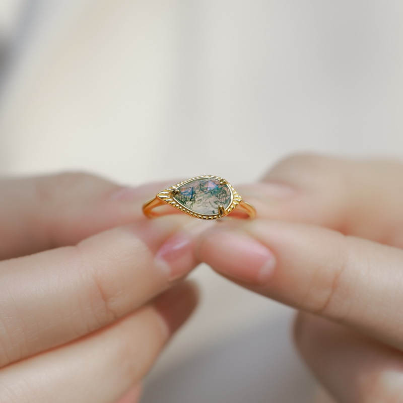 925er Sterling Silber Manschette Fingerring, mit Moos Achat, goldfarben plattiert, Vintage & für Frau, Größe:6, verkauft von PC