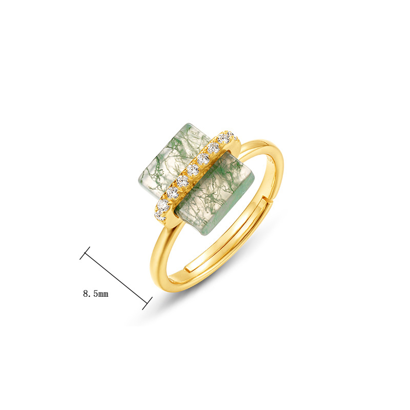 925er Sterling Silber Manschette Fingerring, mit Moos Achat, Geometrisches Muster, goldfarben plattiert, für Frau & mit Strass, Größe:7, verkauft von PC