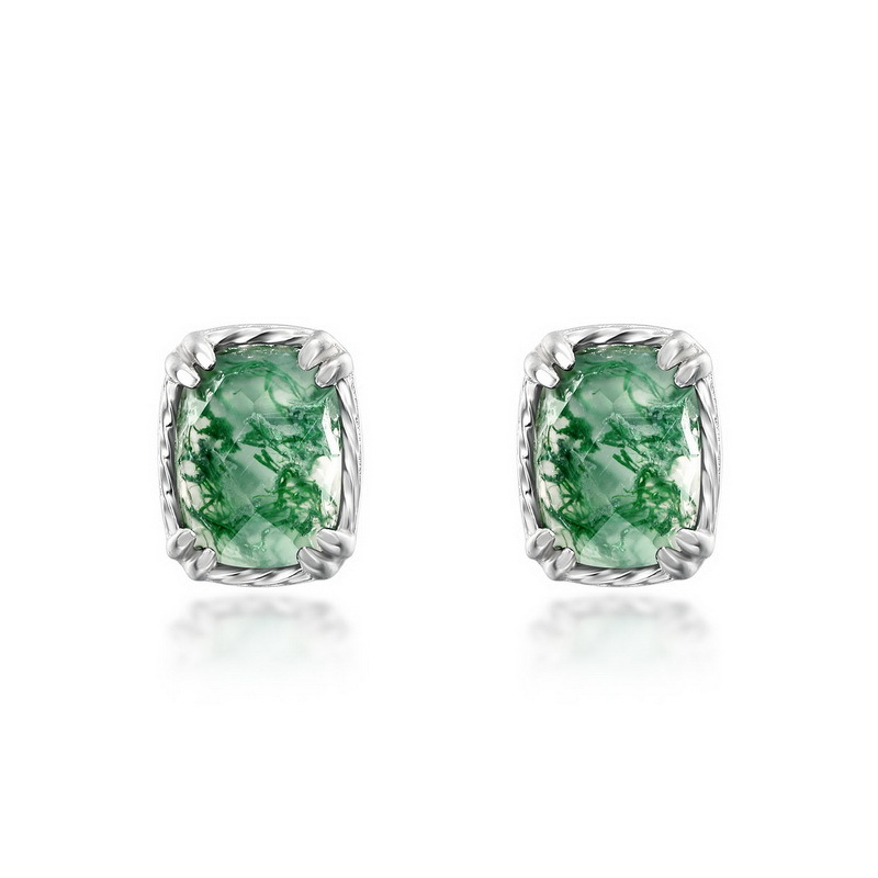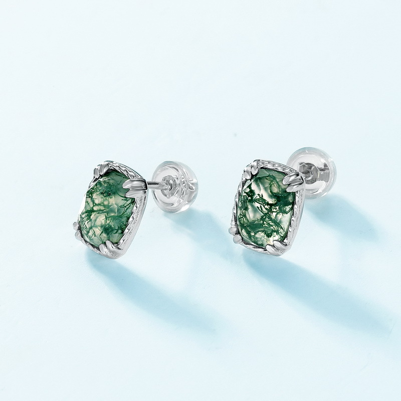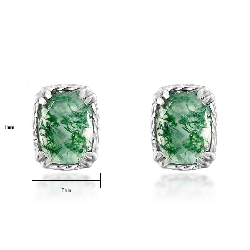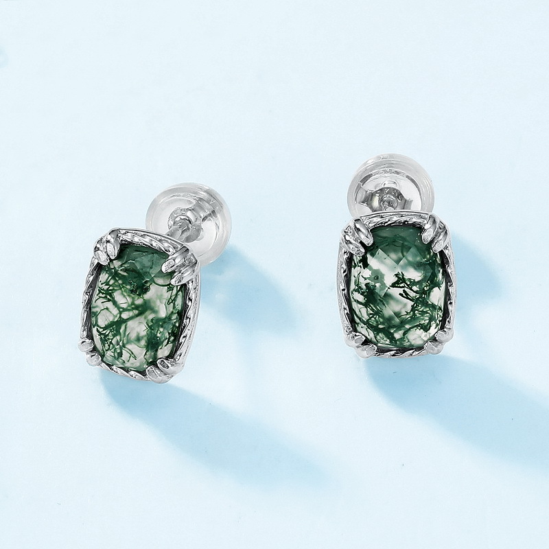 925er Sterling Silber Ohrstecker, mit Moos Achat, Geometrisches Muster, platiniert, Modeschmuck & für Frau, 6x8mm, verkauft von Paar