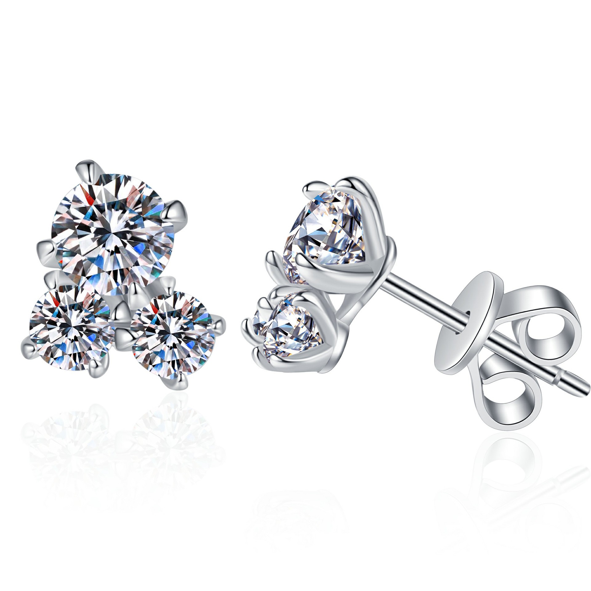 925er Sterling Silber Ohrstecker, mit Moissanite, platiniert, Modeschmuck & für Frau, verkauft von Paar