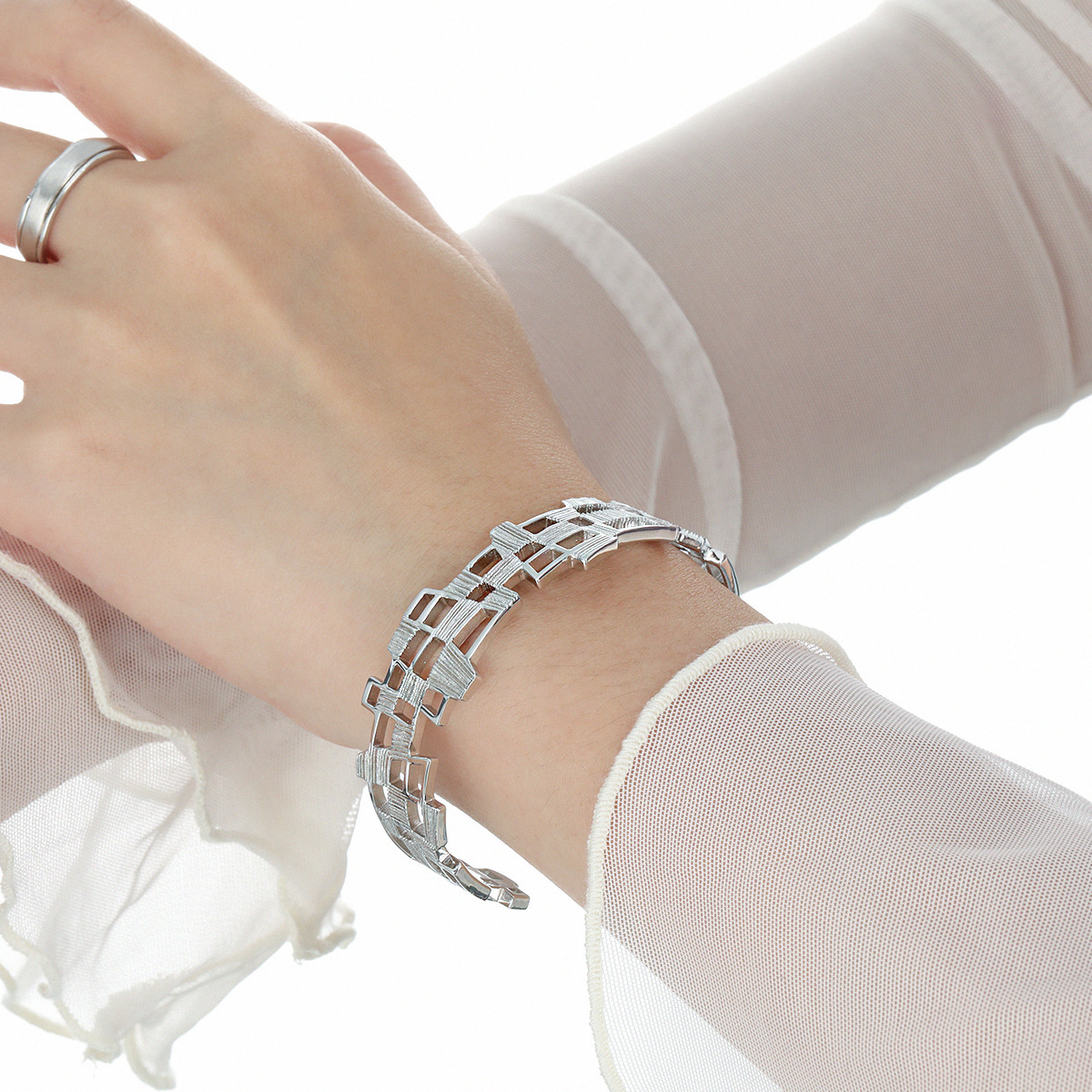 925er Sterling Silber Armreif, platiniert, gebürstet & für Frau & hohl, Innendurchmesser:ca. 58mm, verkauft von PC
