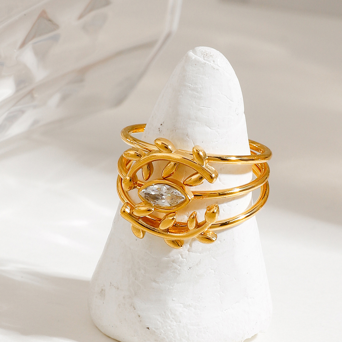 Strass Edelstahl Fingerring, 304 Edelstahl, goldfarben plattiert, drei Stücke & Modeschmuck & mit Strass, goldfarben, verkauft von setzen