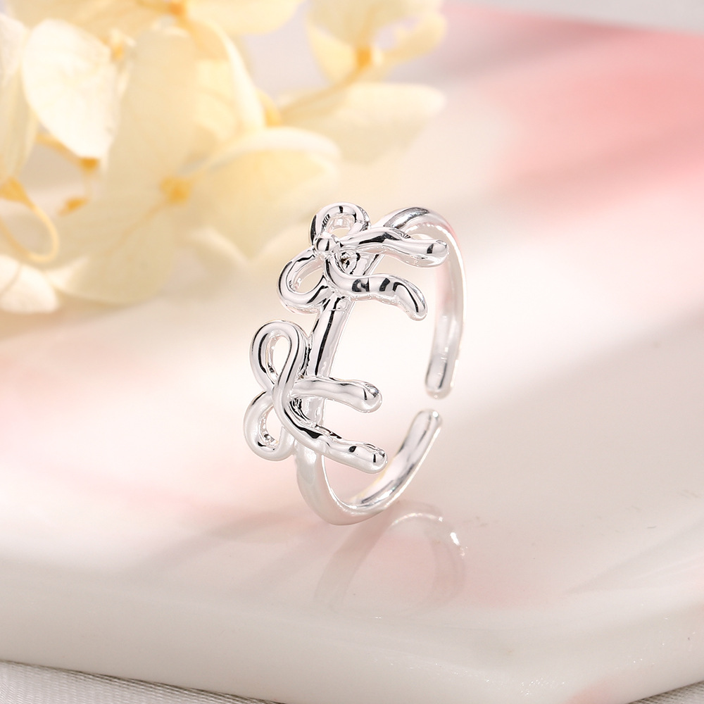 Messing Fingerring, Schleife, plattiert, für Frau, Platin Farbe, verkauft von PC