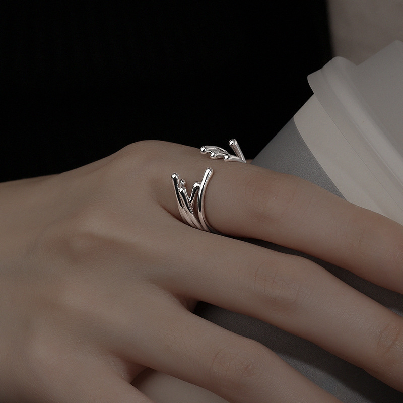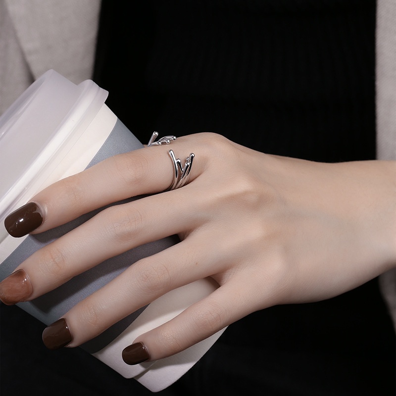 Messing Manschette Fingerring, Geweihe, versilbert, einstellbar & für Frau, frei von Blei & Kadmium, 7x2mm, Größe:7.5, verkauft von PC