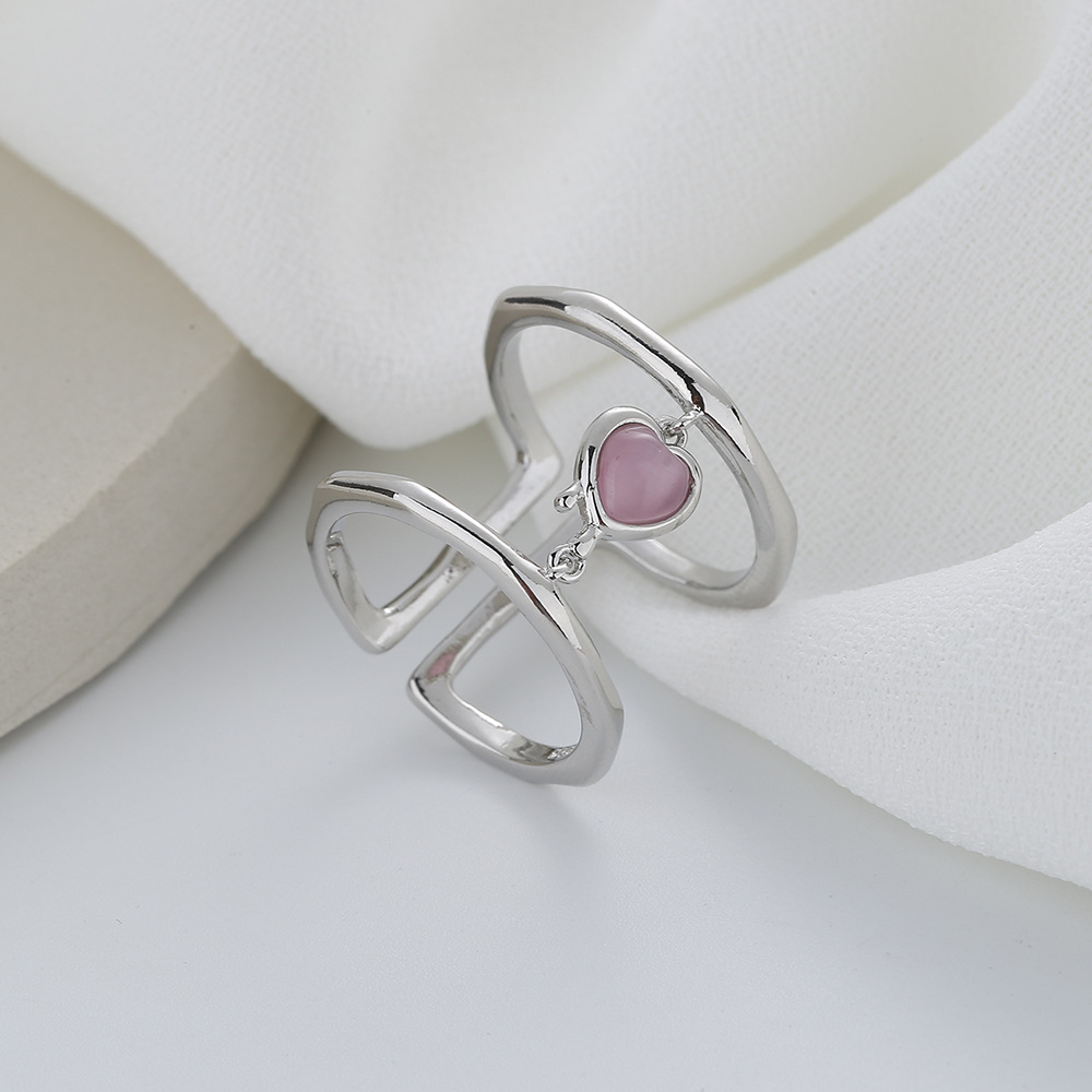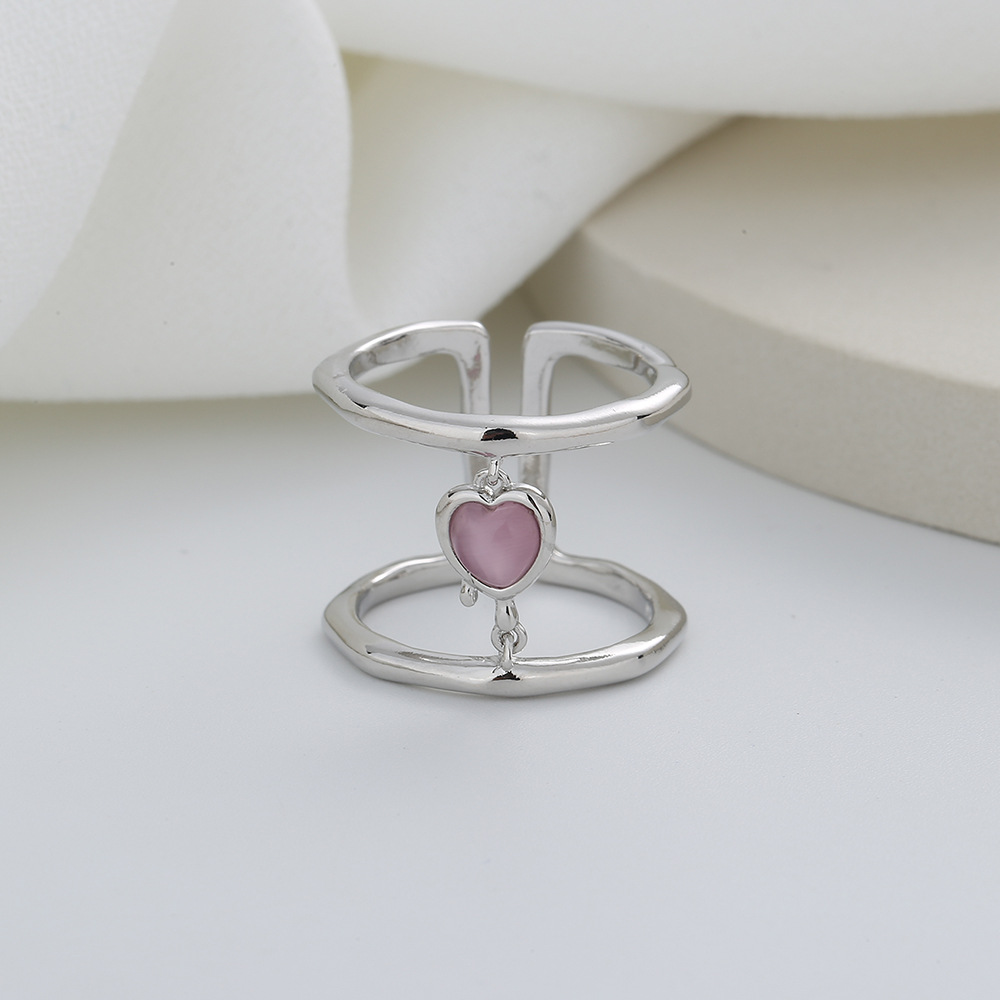 Messing Fingerring, mit Katzenauge, plattiert, für Frau, Platin Farbe, verkauft von PC