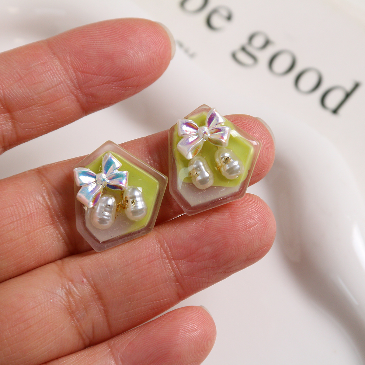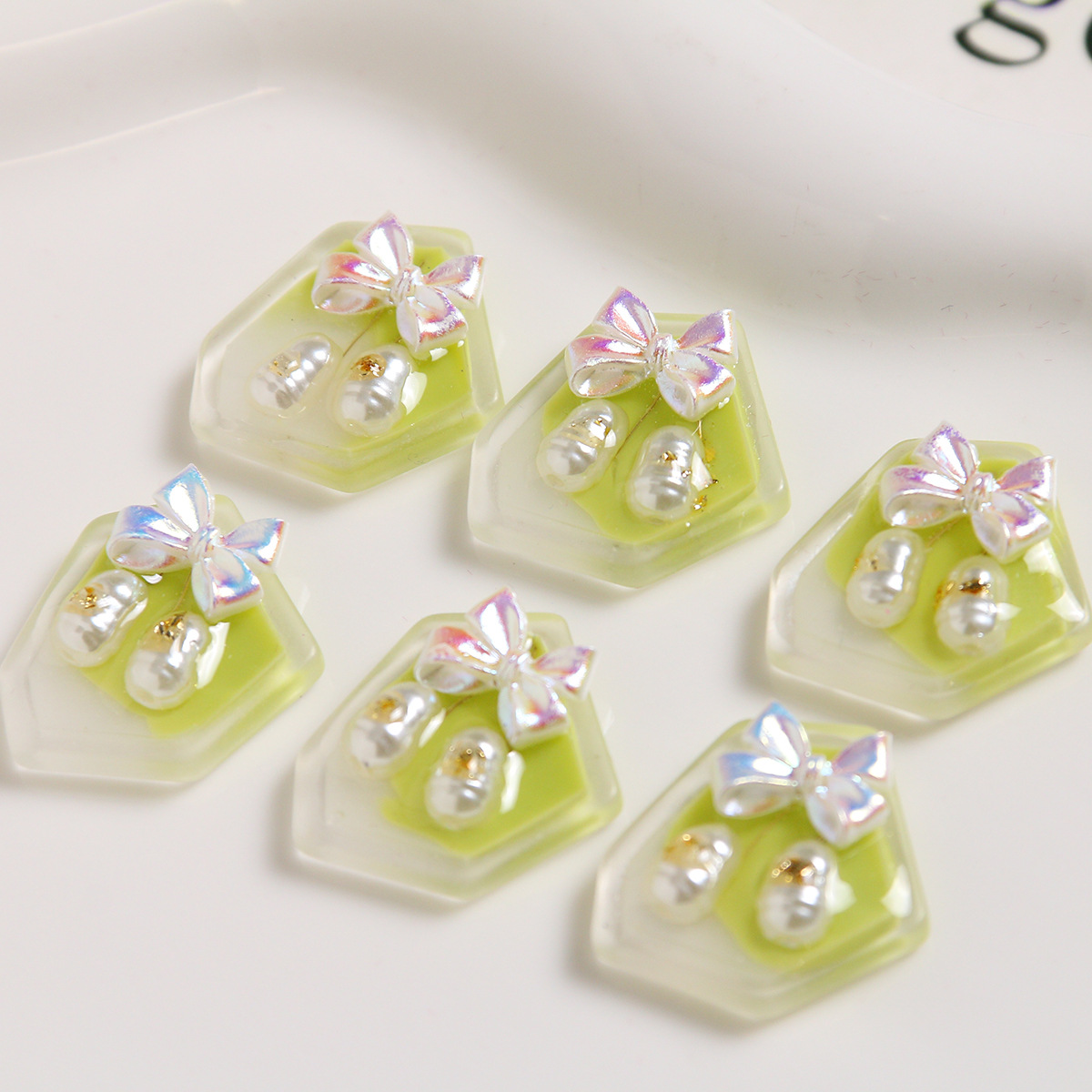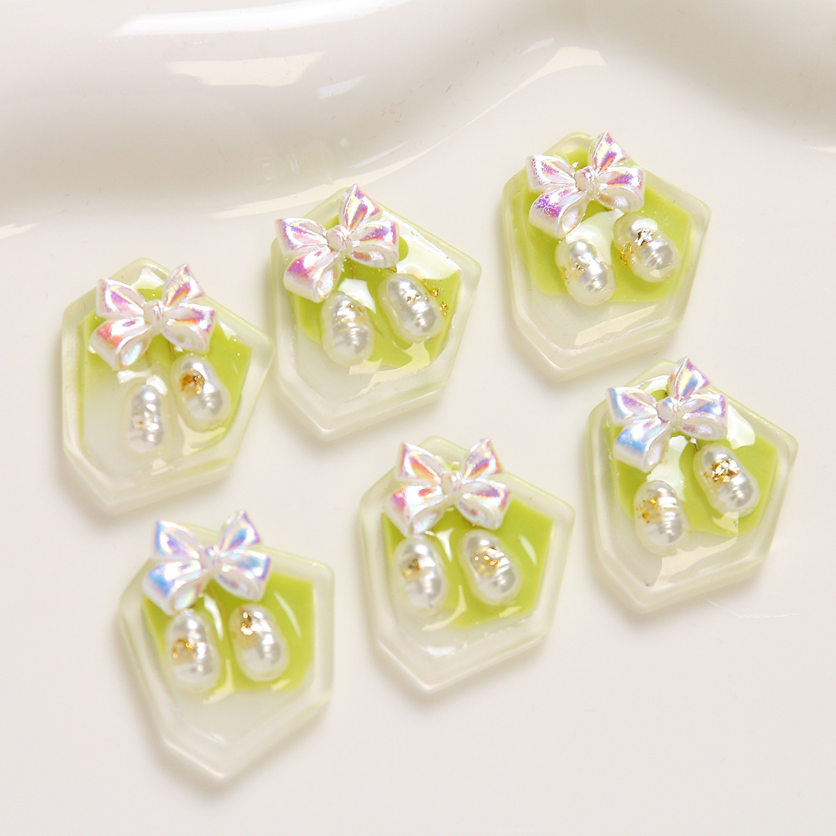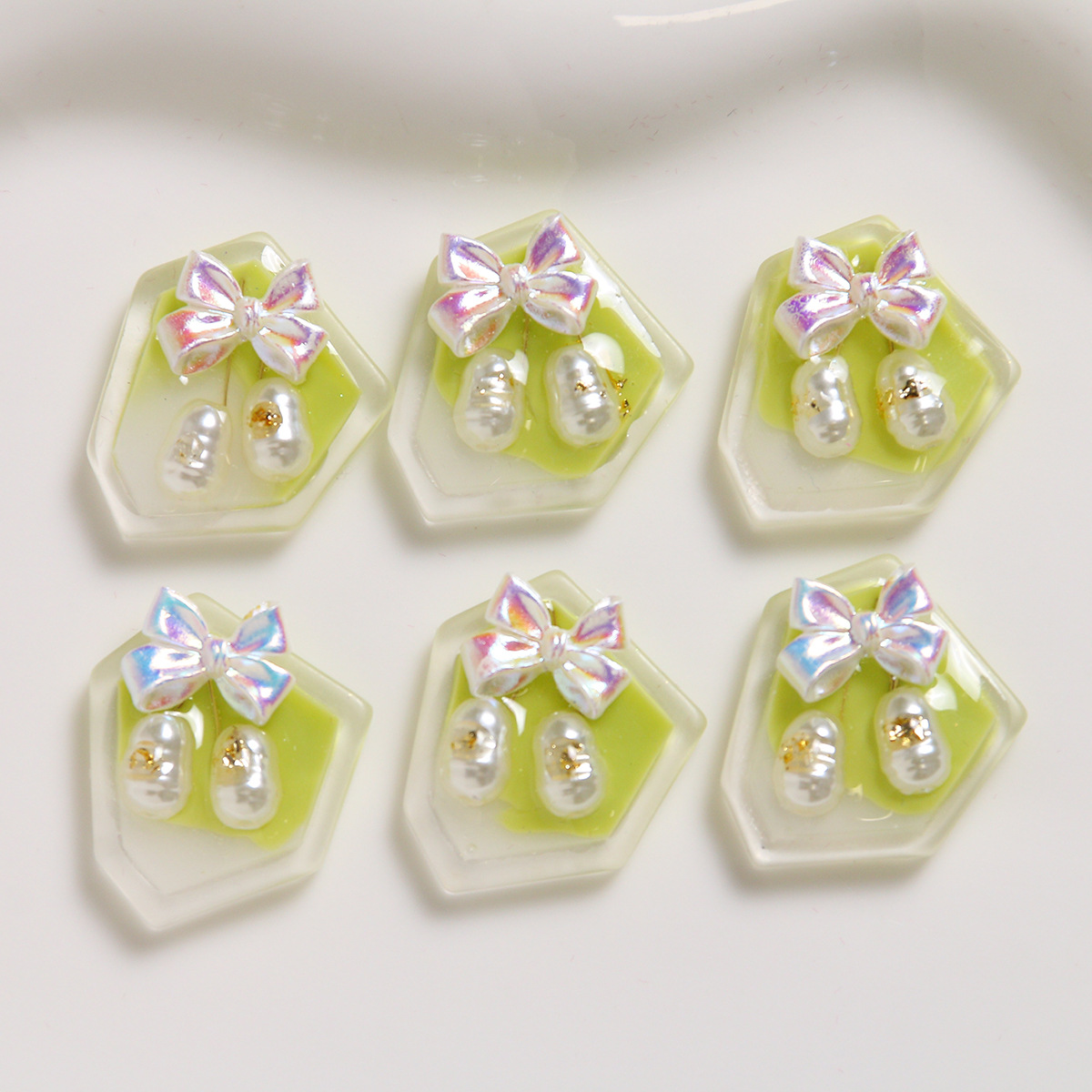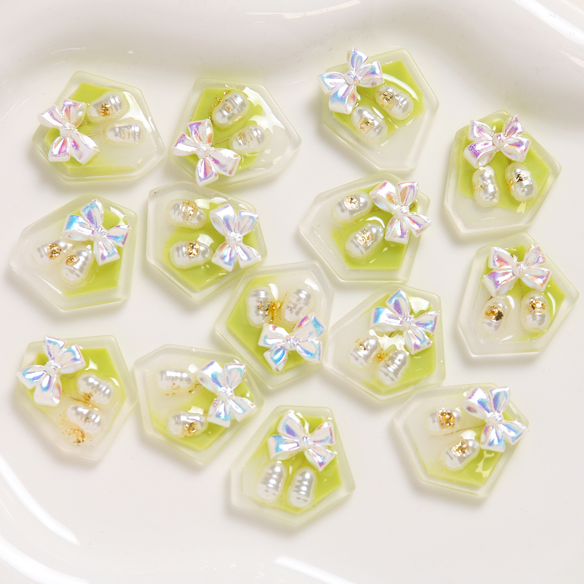 Haarapnge Zubehör, Harz, mit Kunststoff Perlen, DIY, grün, 20x19mm, verkauft von PC