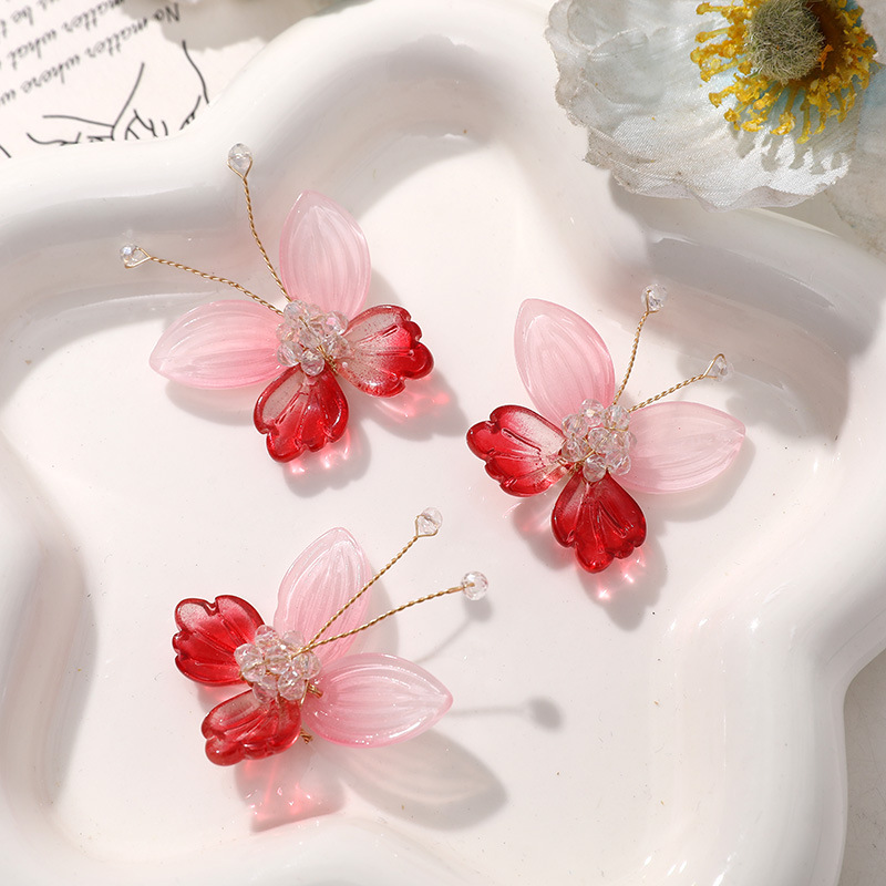 Haarapnge Zubehör, Glas, mit Messingdraht, Schmetterling, DIY, Rosa, 35x30mm, verkauft von PC