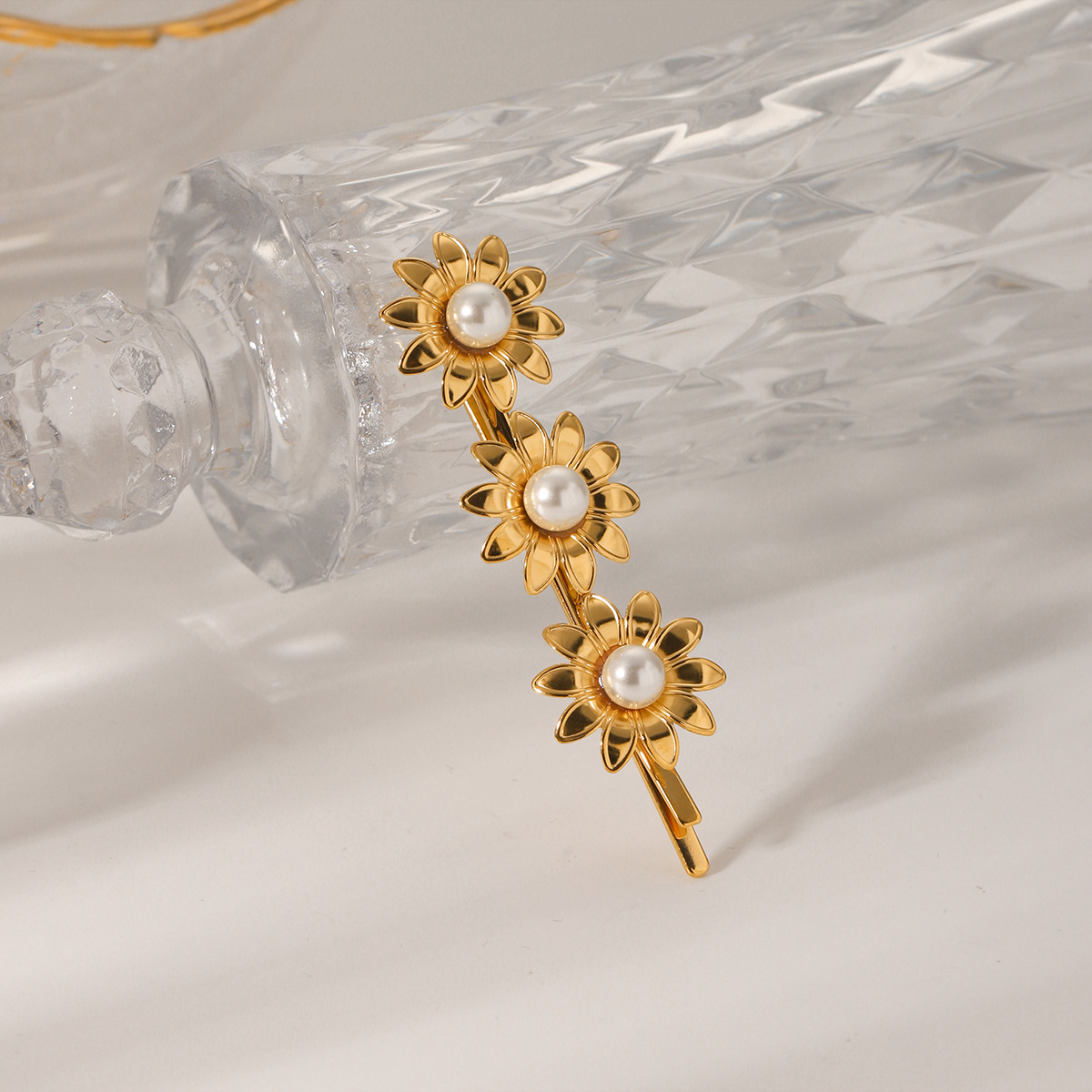 Haarschieber, 304 Edelstahl, mit Kunststoff Perlen, goldfarben plattiert, Modeschmuck, goldfarben, verkauft von PC