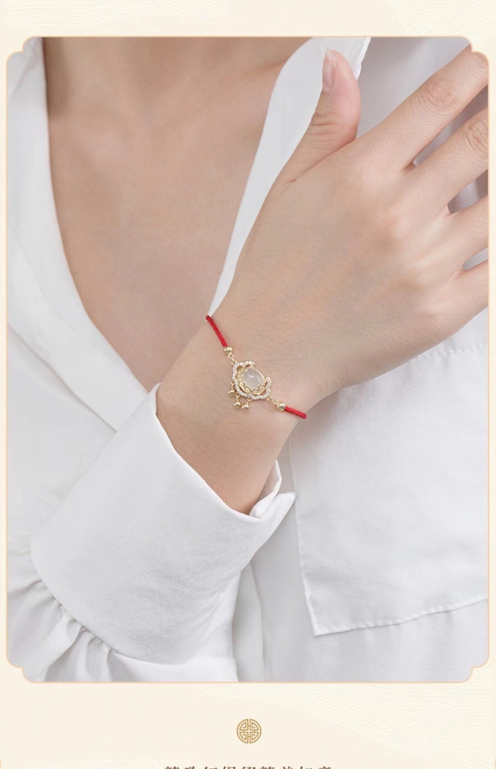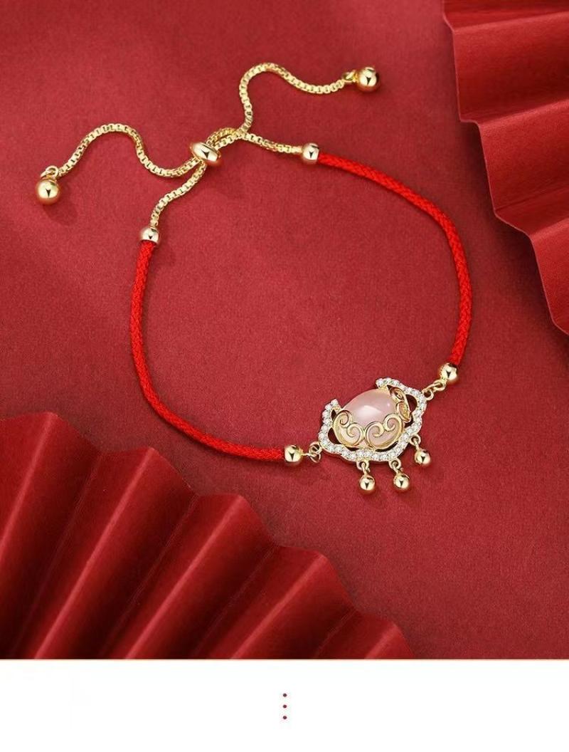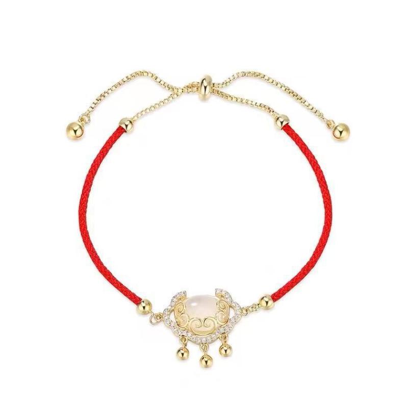 Befestiger Zirkonia Messing Armband, mit Knotenschnur & Katzenauge, plattiert, Modeschmuck & Micro pave Zirkonia, zwei verschiedenfarbige, 17x17mm, Länge:19 cm, verkauft von PC