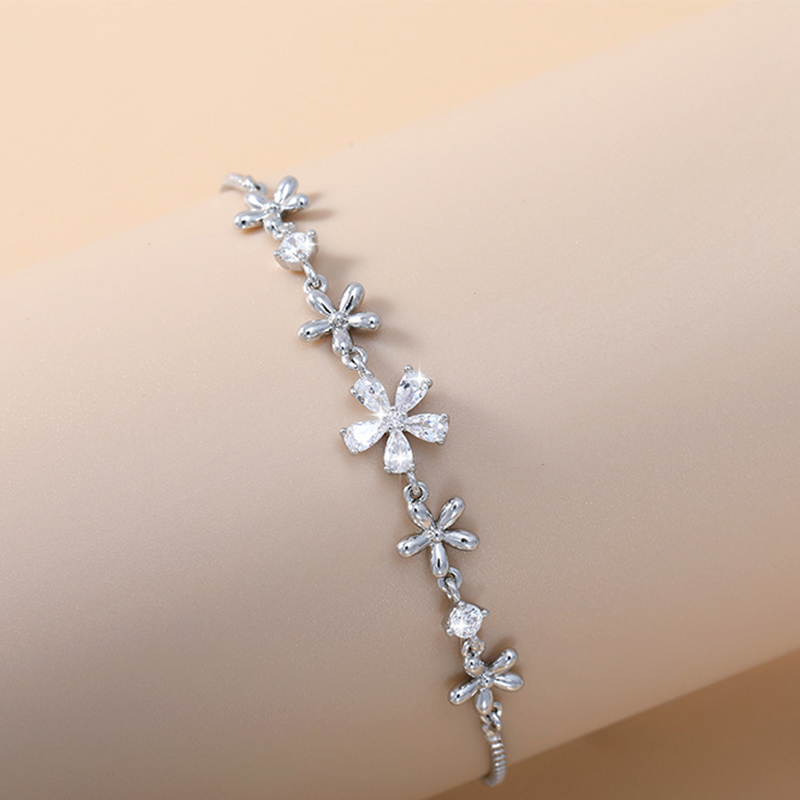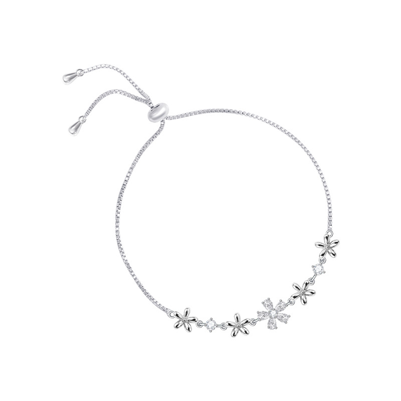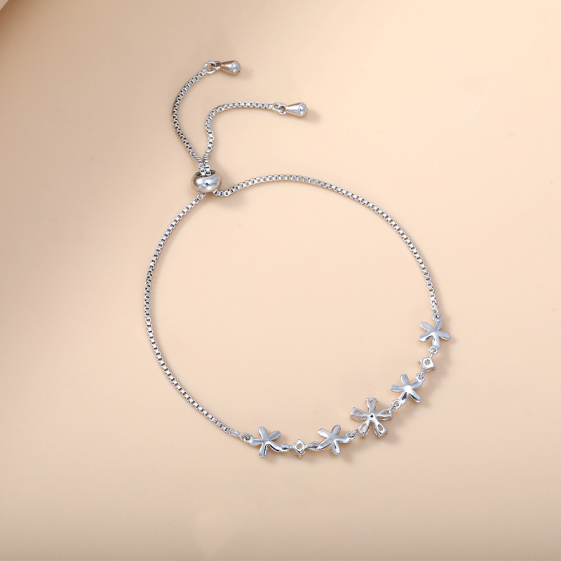 Befestiger Zirkonia Messing Armband, Blume, plattiert, einstellbar & Kastenkette & Micro pave Zirkonia & für Frau, Silberfarbe, Länge:ca. 6-9 ZollInch, verkauft von PC