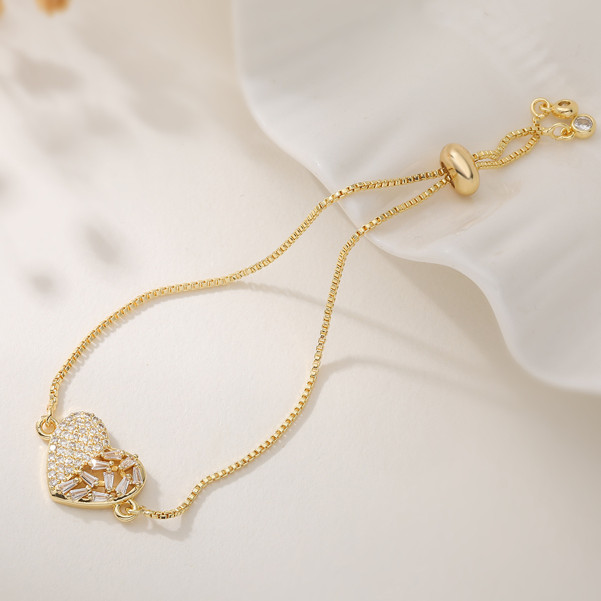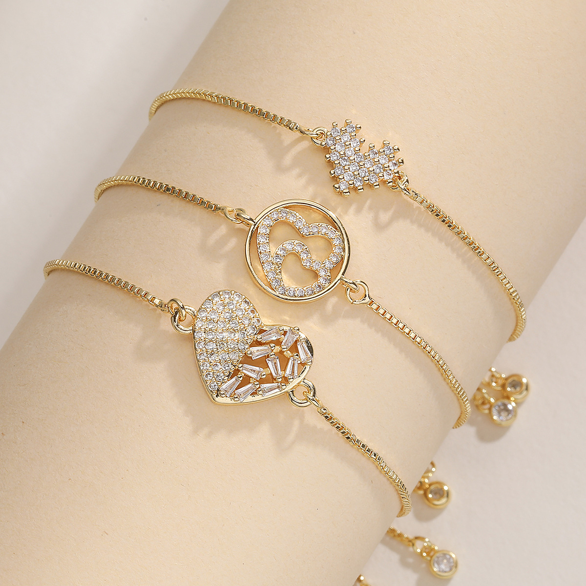 Befestiger Zirkonia Messing Armband, Herz, 18K vergoldet, verschiedene Stile für Wahl & Micro pave Zirkonia & für Frau, verkauft von PC