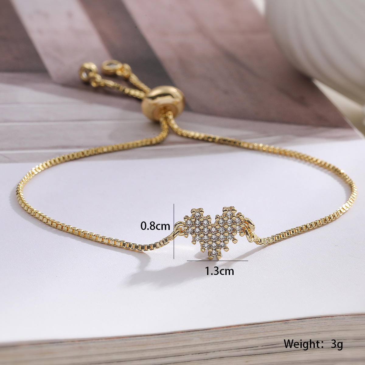 Befestiger Zirkonia Messing Armband, mit Nylonschnur, Herz, plattiert, Einstellbar & unisex & Micro pave Zirkonia, keine, 12mmx5mmx1mm, verkauft von PC