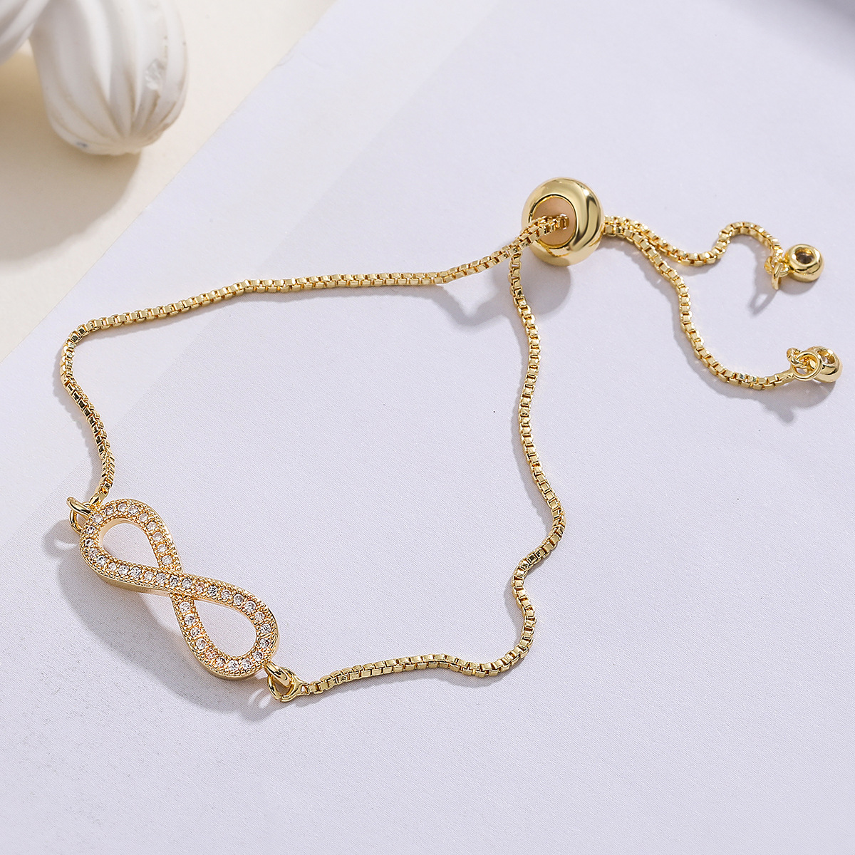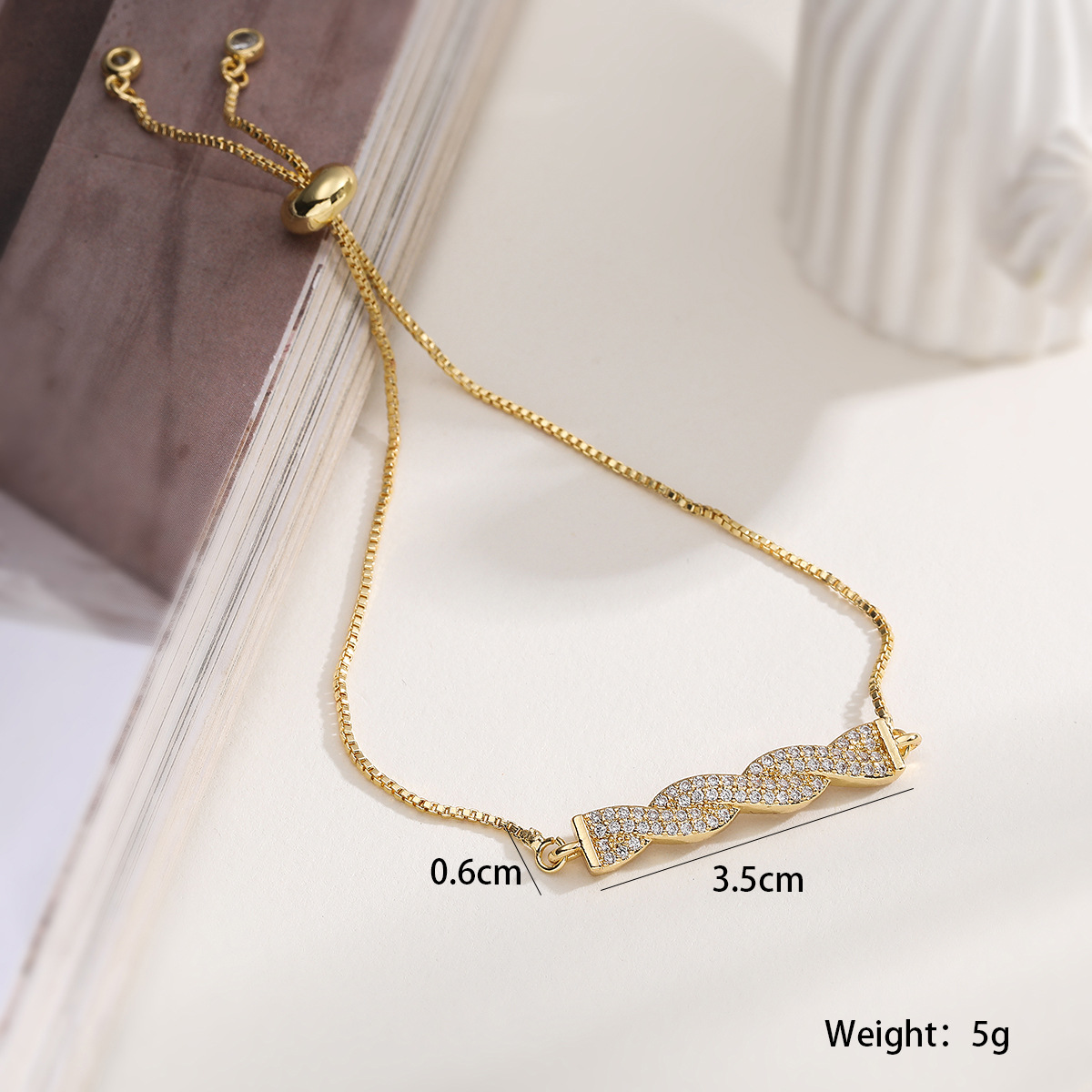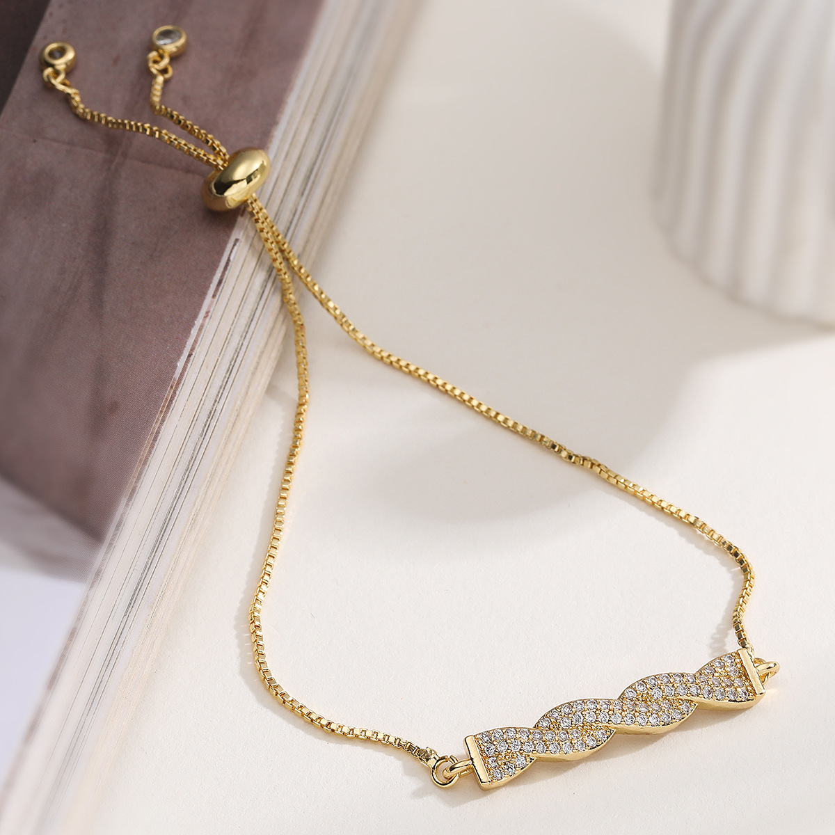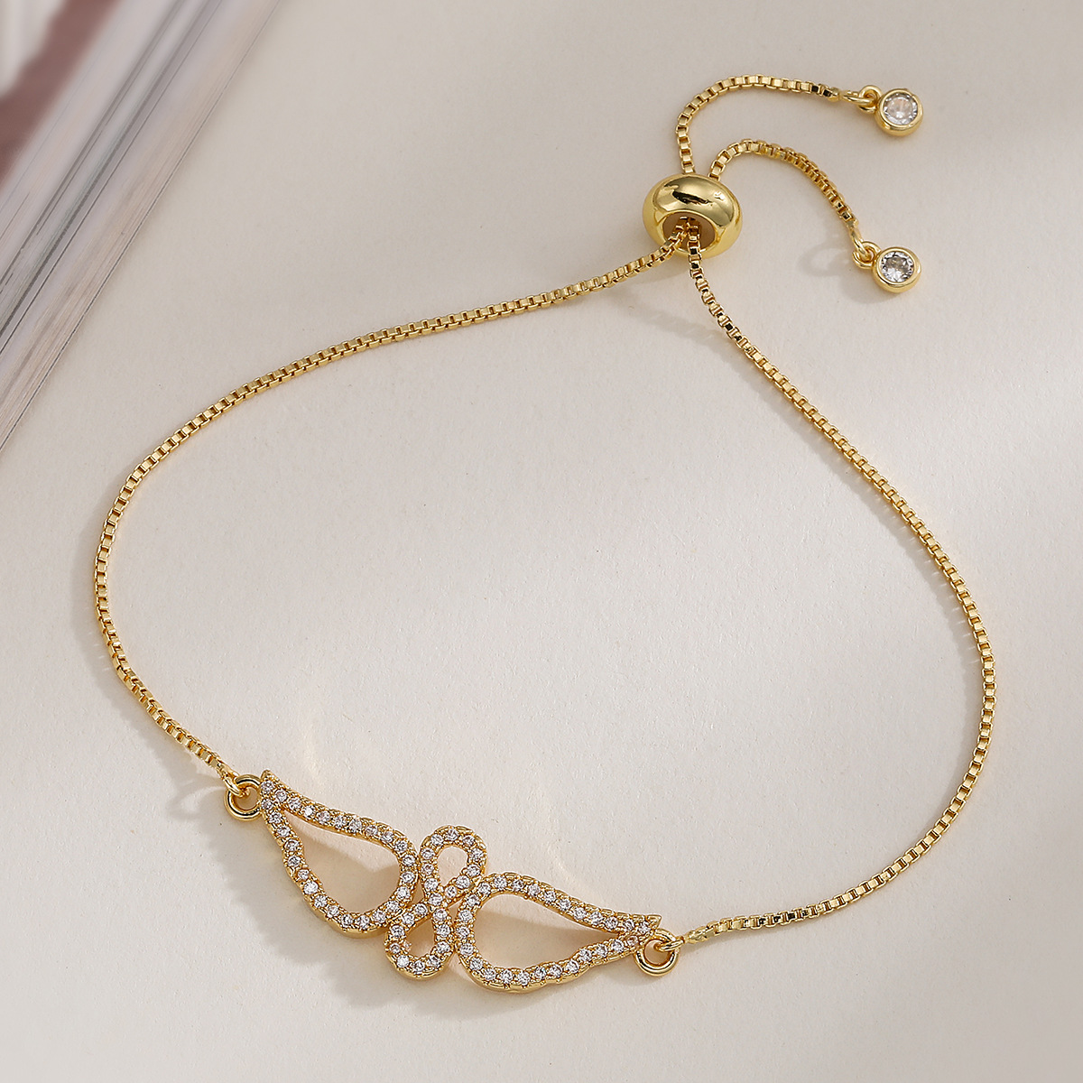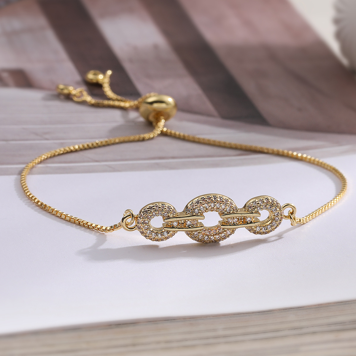 Befestiger Zirkonia Messing Armband, plattiert, einstellbar & Kastenkette & Micro pave Zirkonia & für Frau, keine, frei von Blei & Kadmium, 26.5x16.5x2mm, Länge:ca. 7.5 ZollInch, verkauft von Box