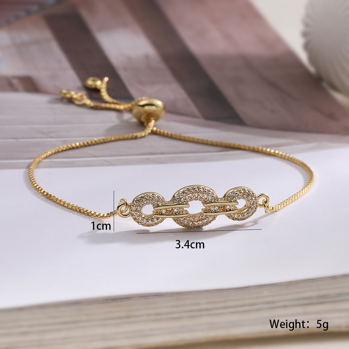 Befestiger Zirkonia Messing Armband, Kreisring, plattiert, einstellbar & Kastenkette & Micro pave Zirkonia & für Frau, keine, frei von Nickel, Blei & Kadmium, 36x10x3.5mm, Länge:ca. 8 ZollInch, verkauft von Strang