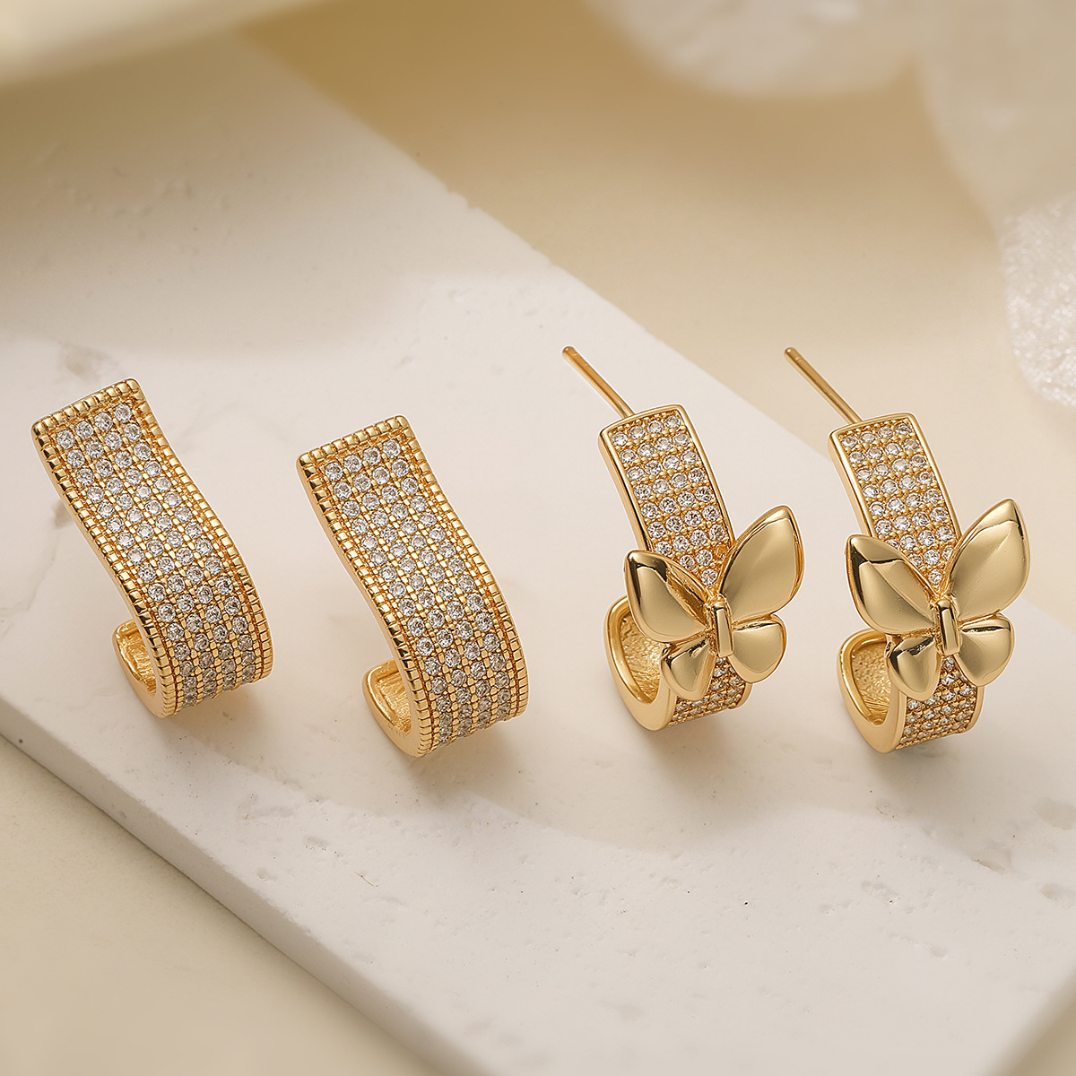 Befestiger Zirkonia Messing Ohrring, 18K vergoldet, verschiedene Stile für Wahl & Micro pave Zirkonia & für Frau, verkauft von Paar