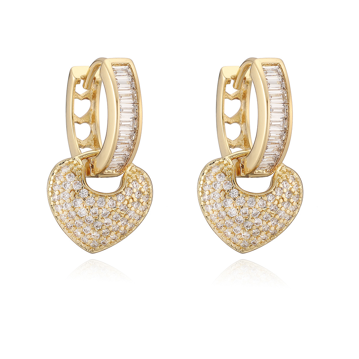 Befestiger Zirkonia Messing Ohrring, Herz, vergoldet, verschiedene Stile für Wahl & Micro pave Zirkonia & für Frau, verkauft von Paar