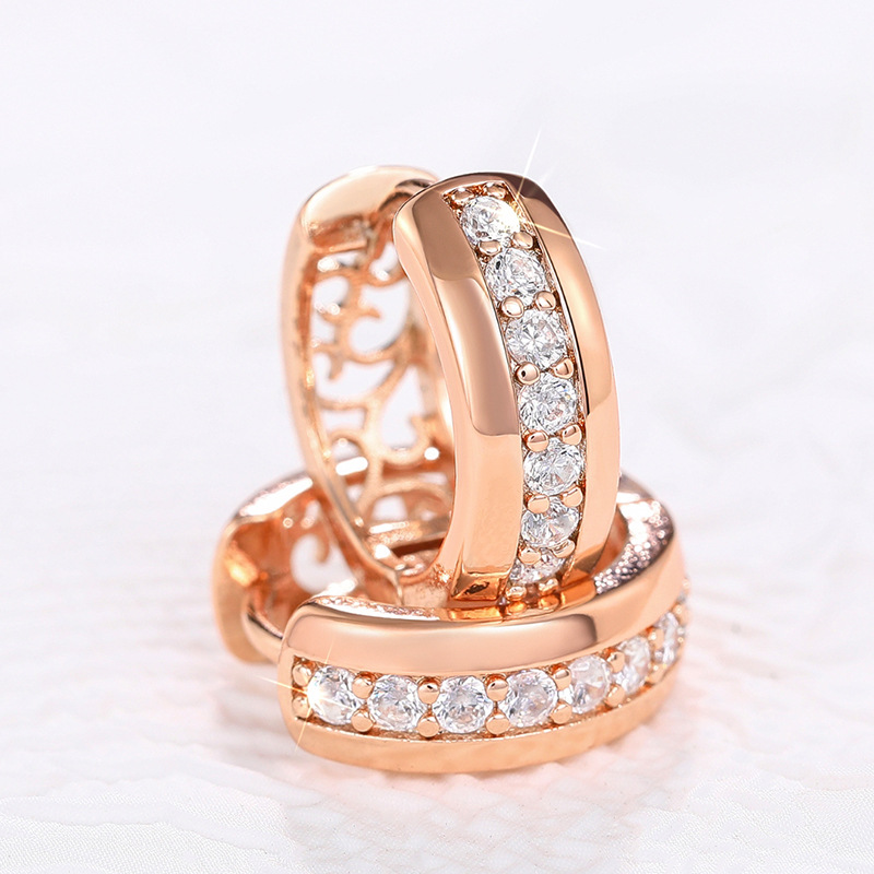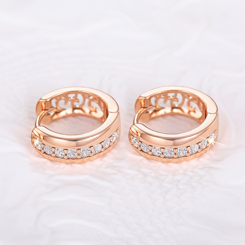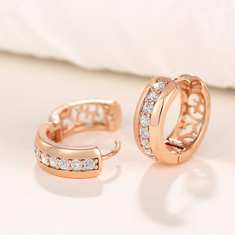 Befestiger Zirkonia Messing Ohrring, plattiert, Micro pave Zirkonia & für Frau & hohl, Roségold, verkauft von Paar