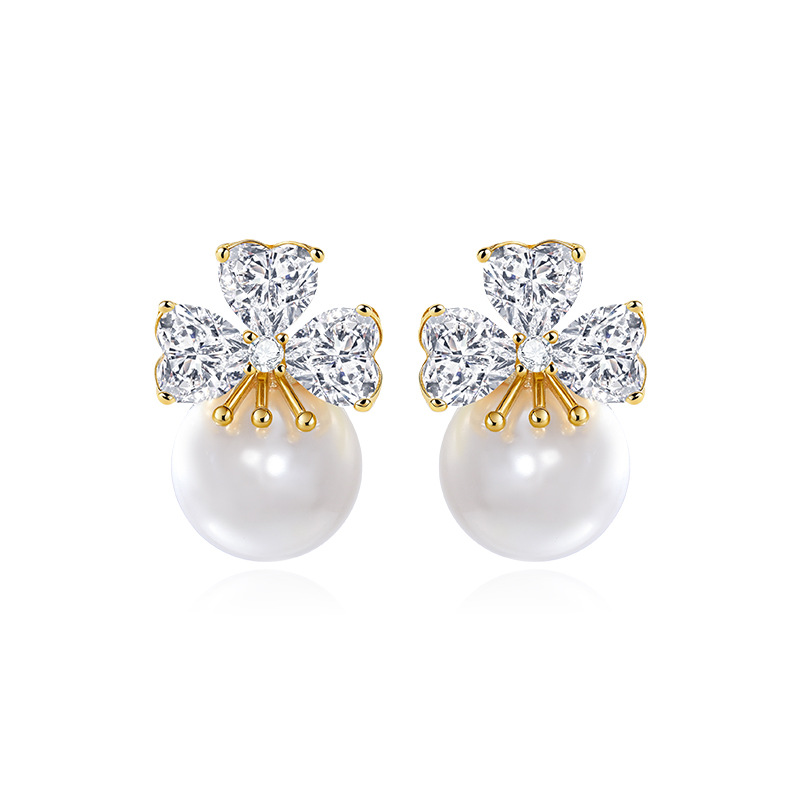 Befestiger Zirkonia Messing Ohrring, mit Kunststoff Perlen, Schmetterling, plattiert, Micro pave Zirkonia & für Frau, keine, 16x11mm, verkauft von PC