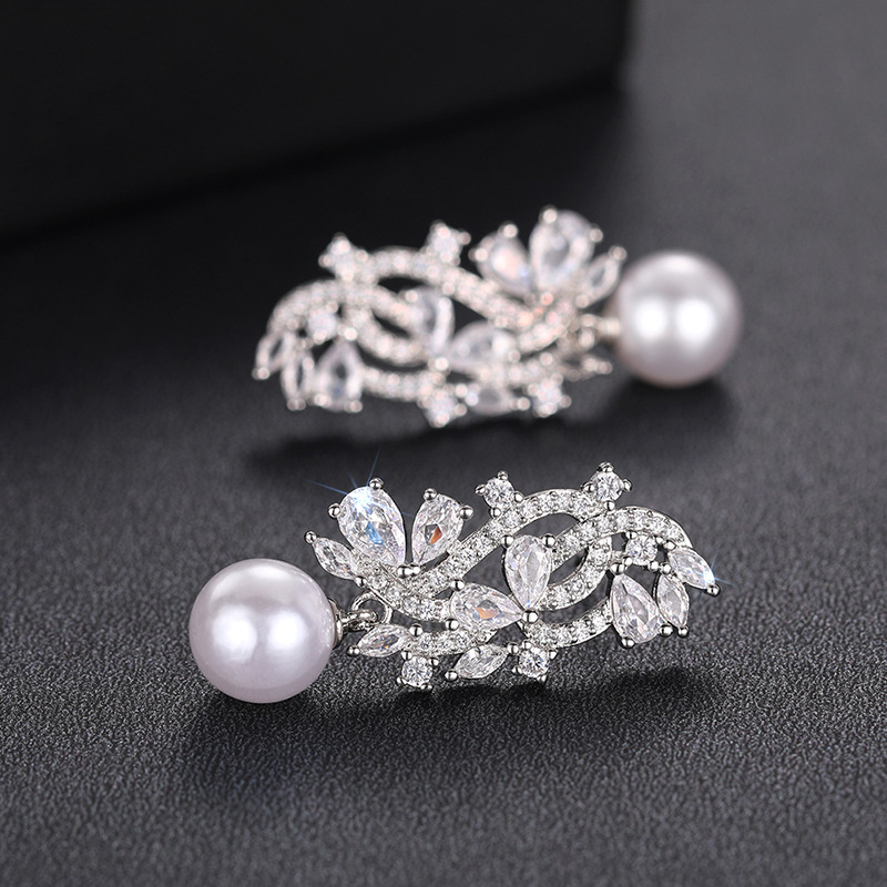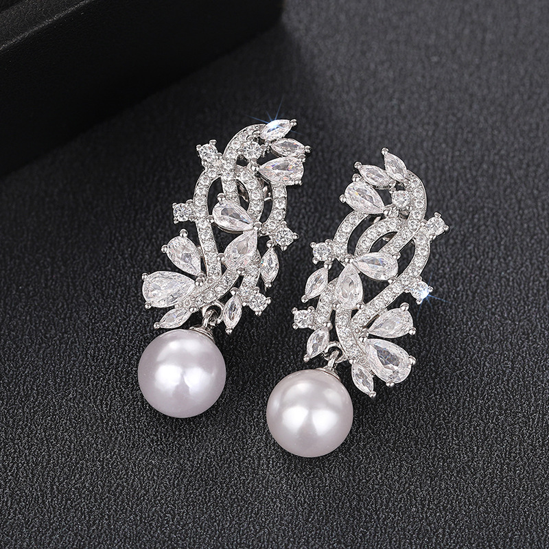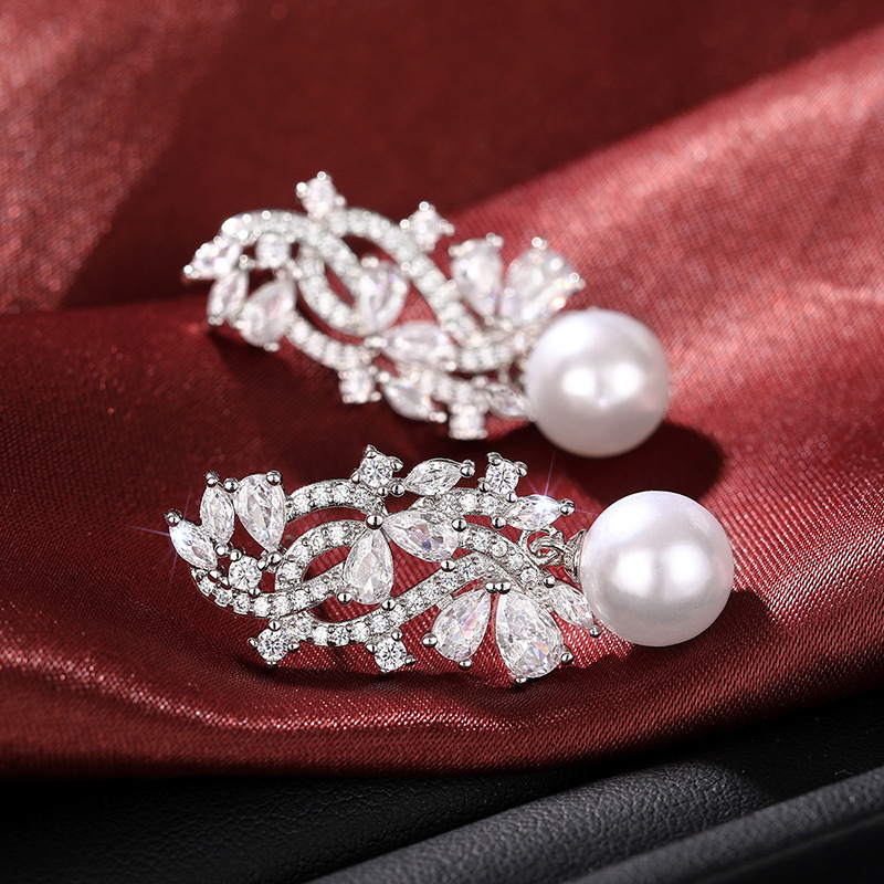 Befestiger Zirkonia Messing Ohrring, mit Kunststoff Perlen, plattiert, Micro pave Zirkonia & für Frau & hohl, verkauft von Paar