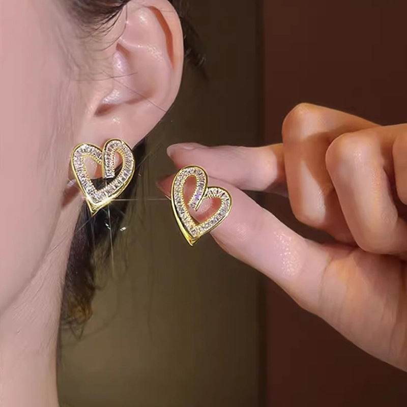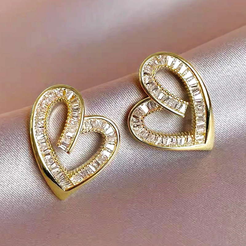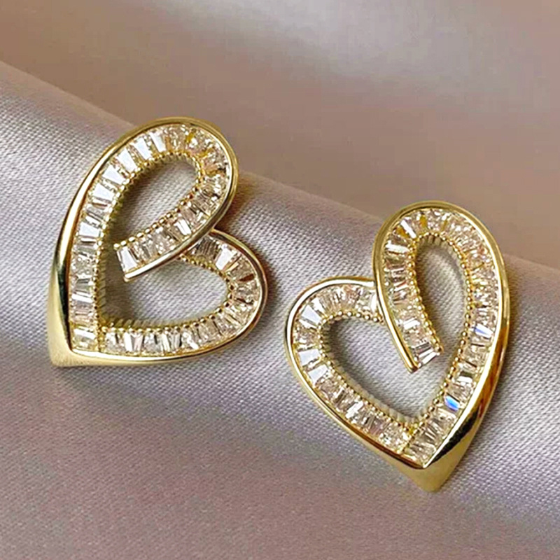 Befestiger Zirkonia Messing Ohrring, Herz, plattiert, Micro pave Zirkonia & für Frau & hohl, verkauft von Paar