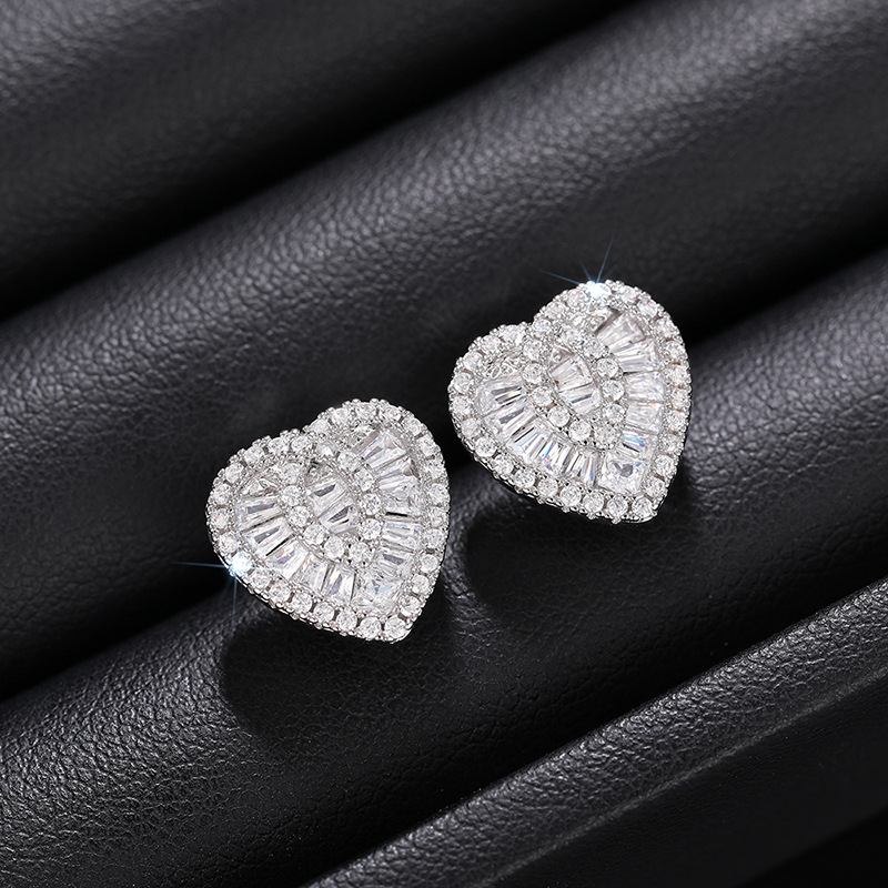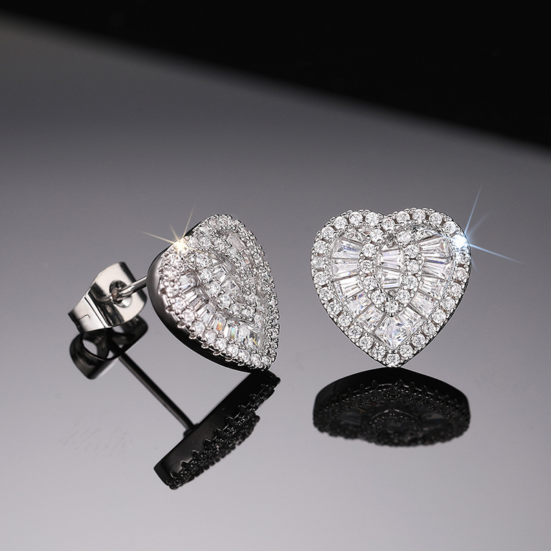 Befestiger Zirkonia Messing Ohrring, Herz, plattiert, Modeschmuck & Micro pave Zirkonia & für Frau, verkauft von Paar