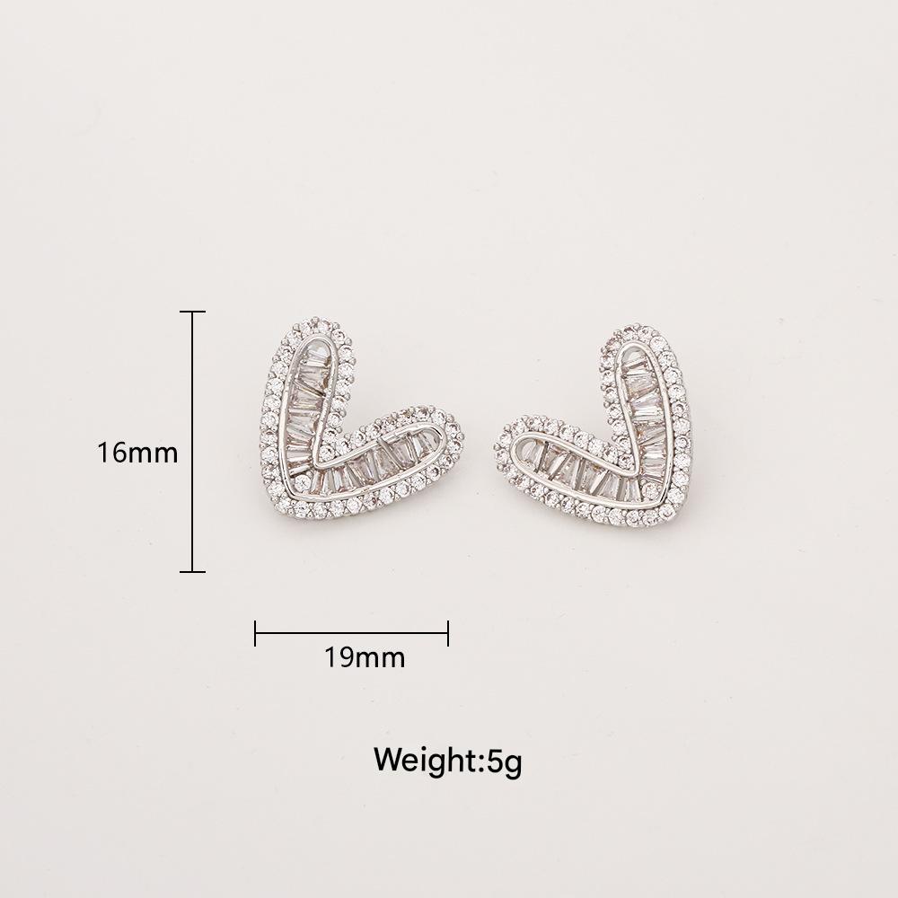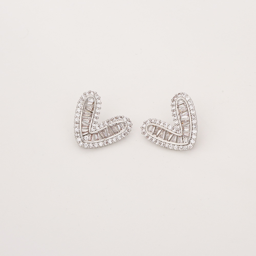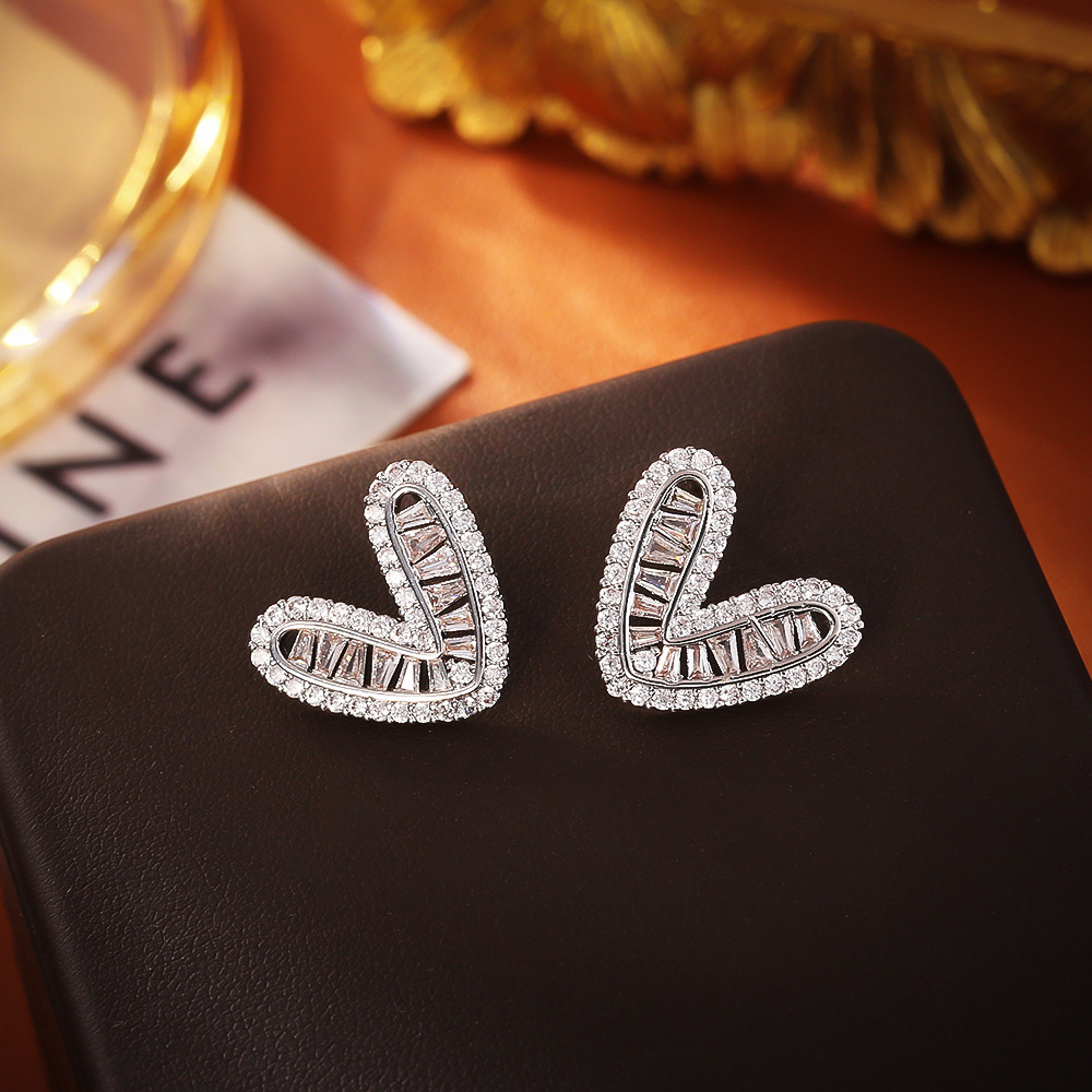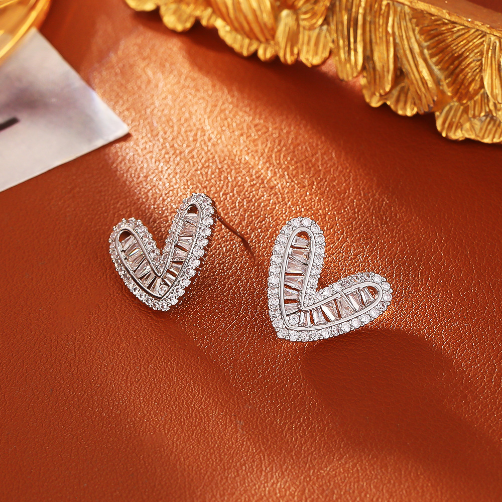Befestiger Zirkonia Messing Ohrring, Herz, plattiert, Modeschmuck & Micro pave Zirkonia & für Frau & hohl, Silberfarbe, verkauft von Paar