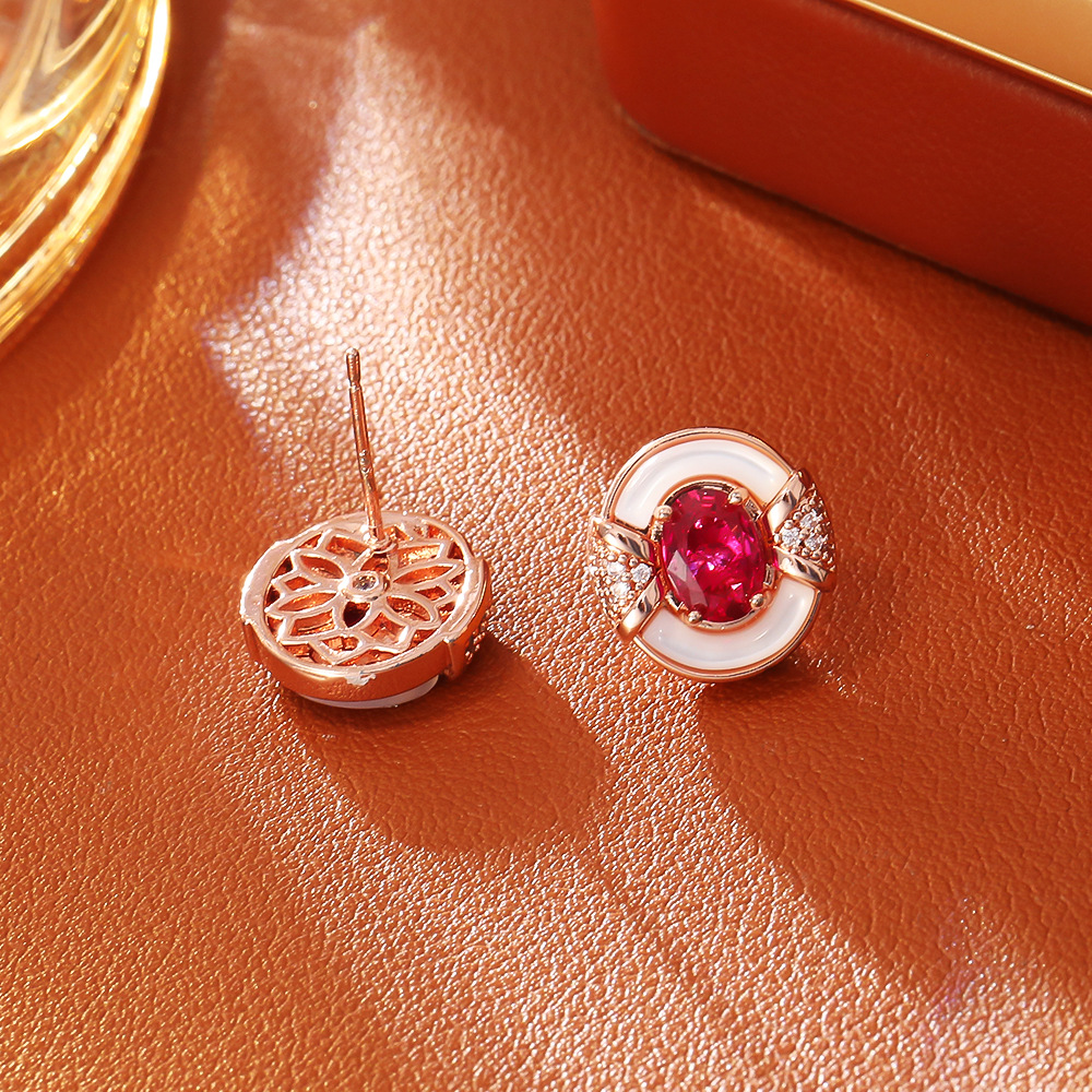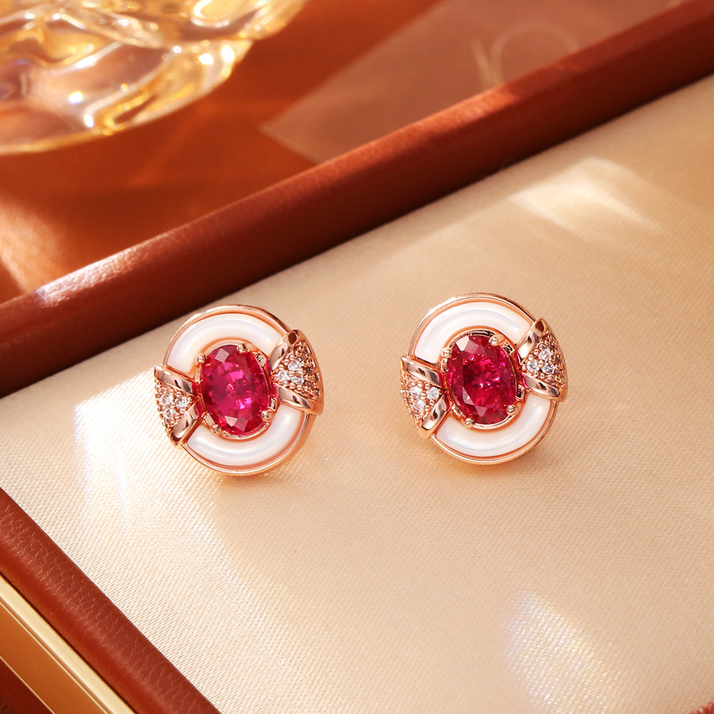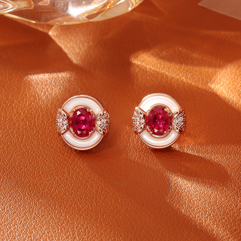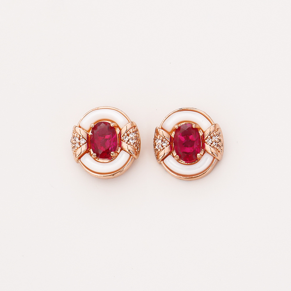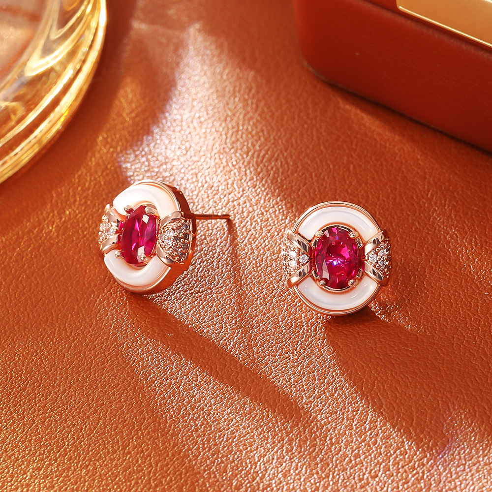 Befestiger Zirkonia Messing Ohrring, mit Perlenoste, vergoldet, Modeschmuck & Micro pave Zirkonia & für Frau, rot, verkauft von Paar
