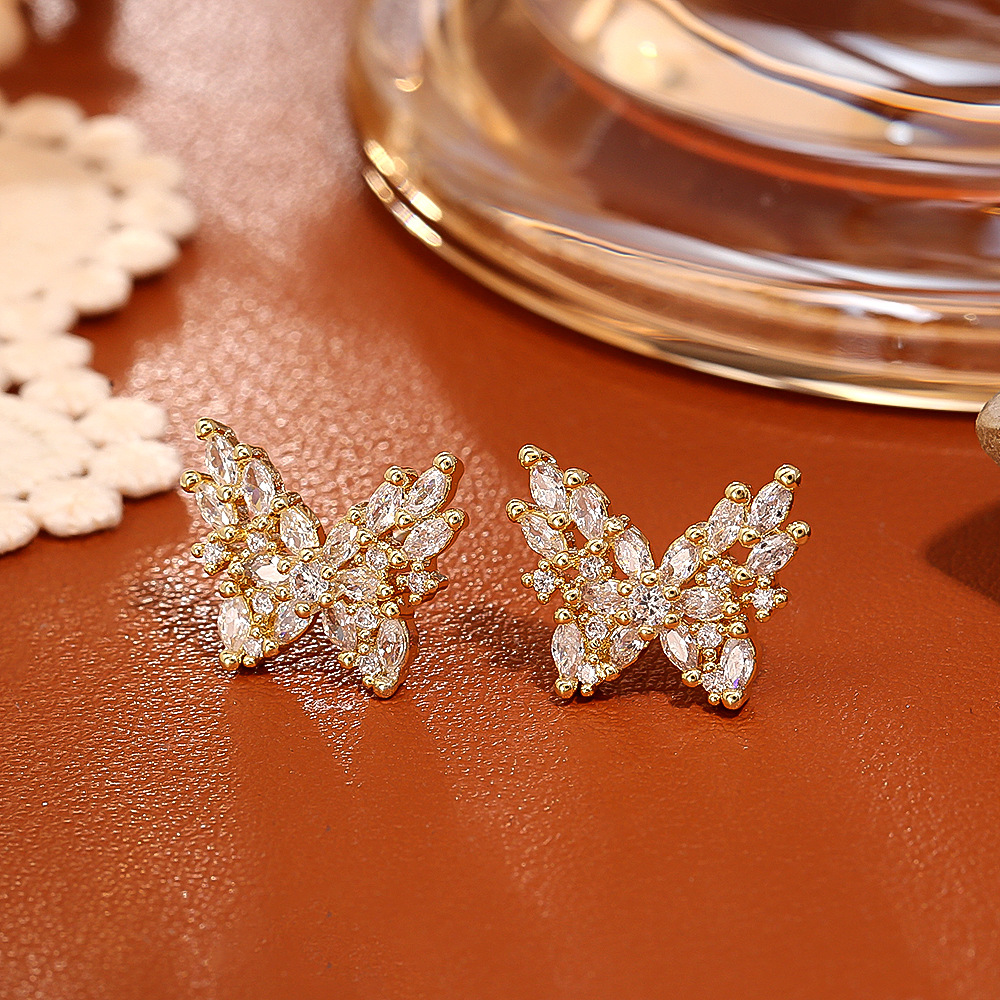 Befestiger Zirkonia Messing Ohrring, Schmetterling, vergoldet, Modeschmuck & Micro pave Zirkonia & für Frau, verkauft von Paar