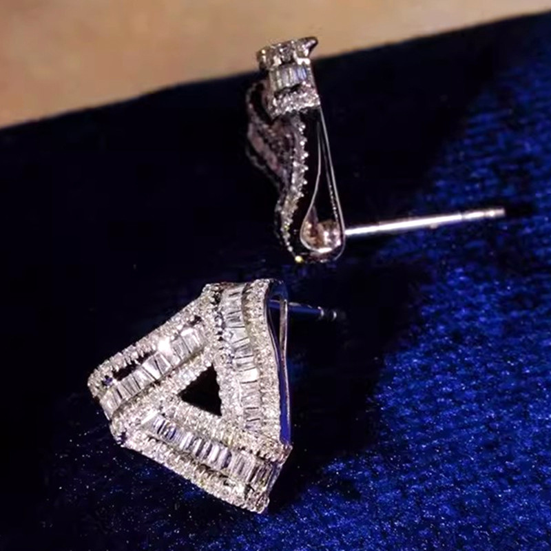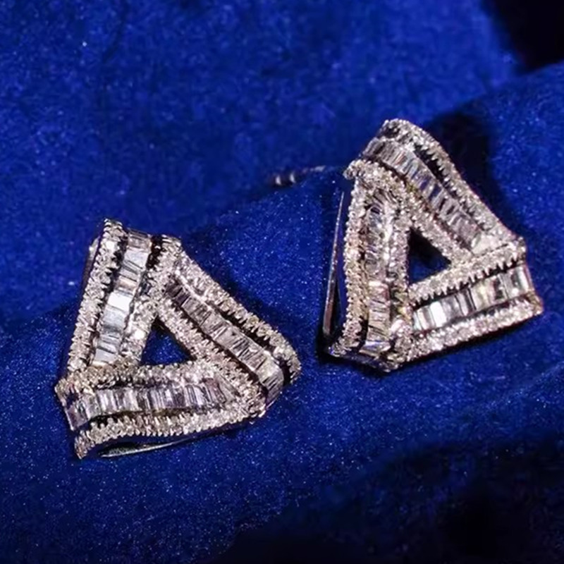 Befestiger Zirkonia Messing Ohrring, Dreieck, plattiert, Micro pave Zirkonia & für Frau & hohl, verkauft von Paar