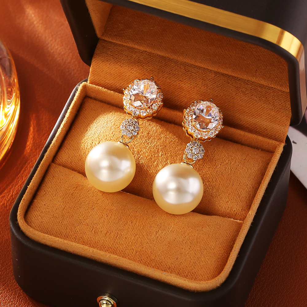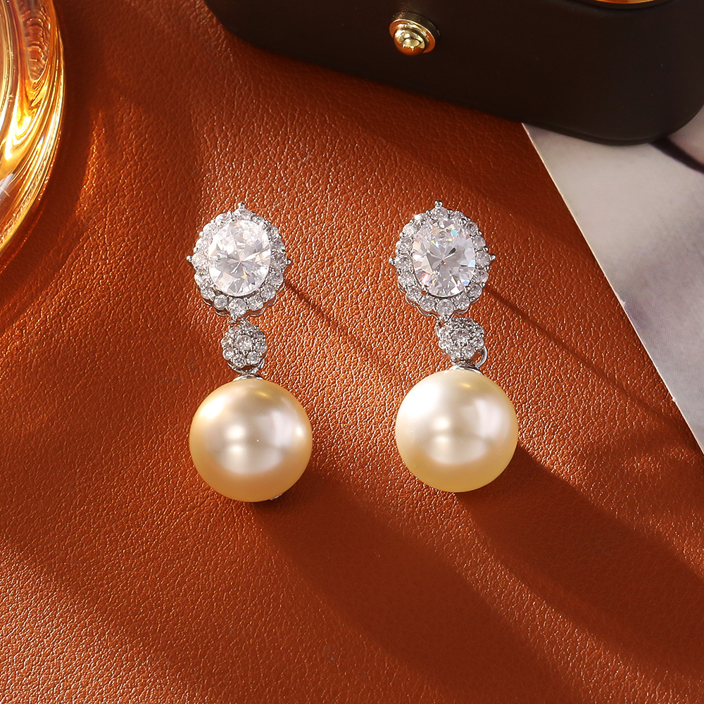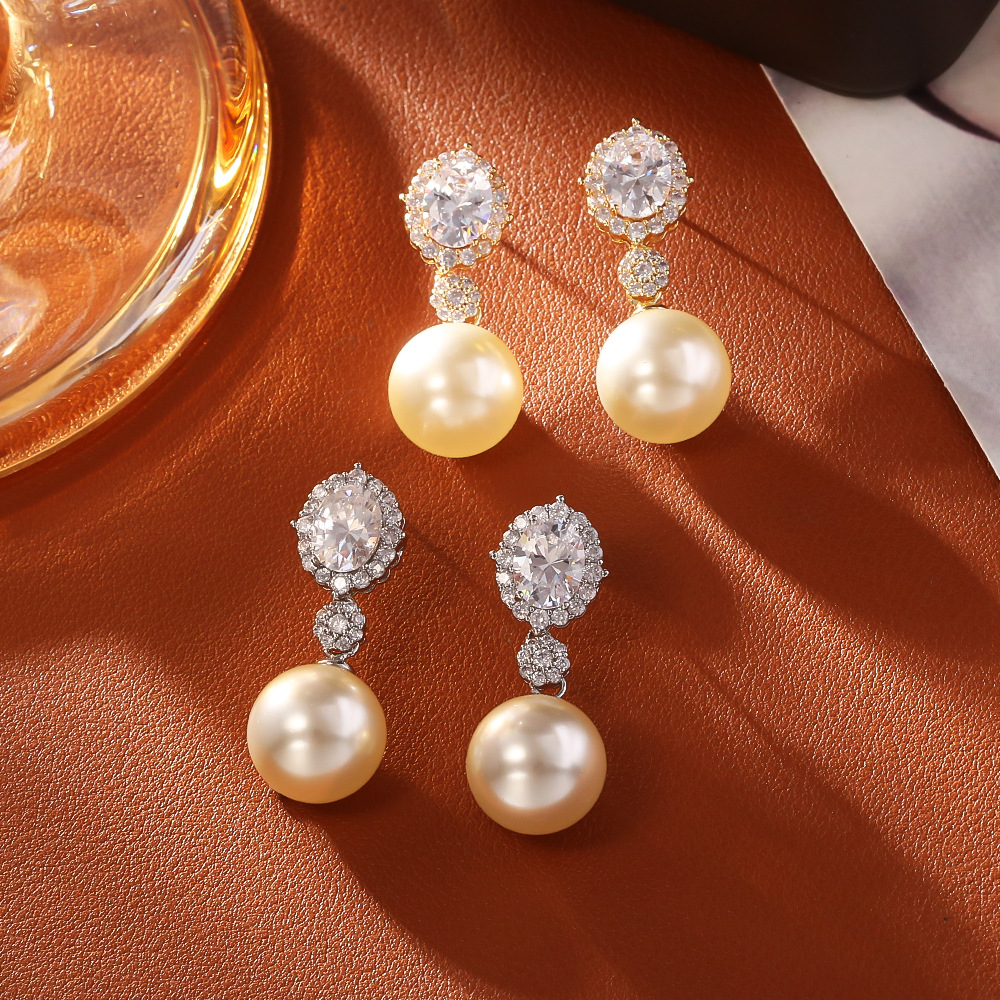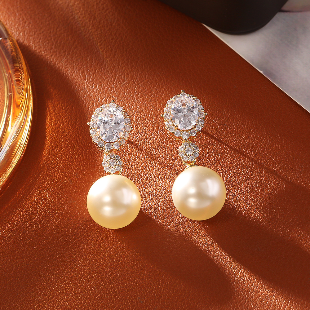 Befestiger Zirkonia Messing Ohrring, mit Kunststoff Perlen, plattiert, Modeschmuck & Micro pave Zirkonia & für Frau, keine, verkauft von Paar