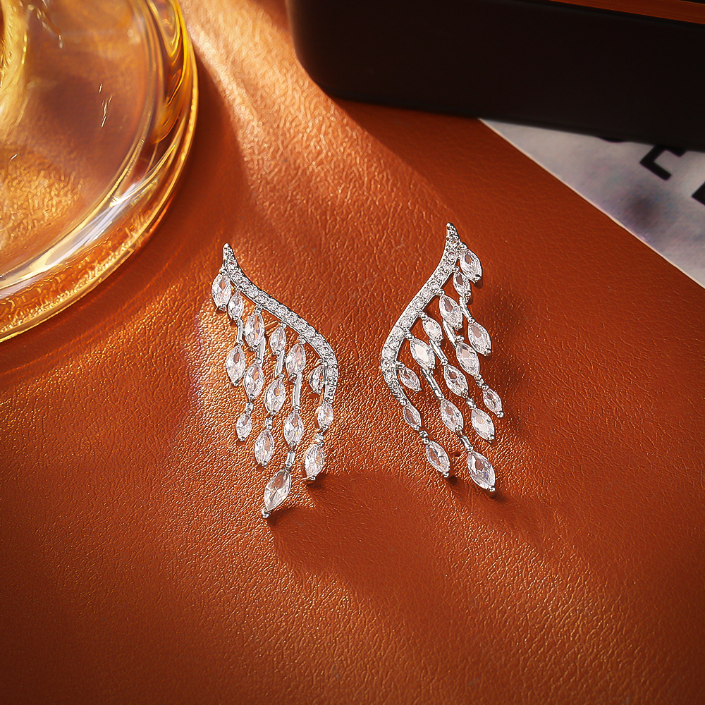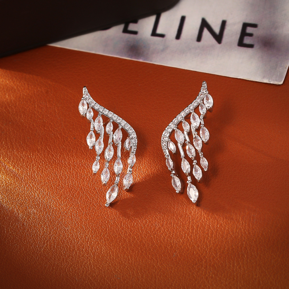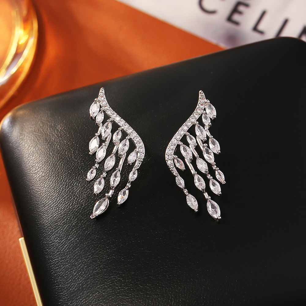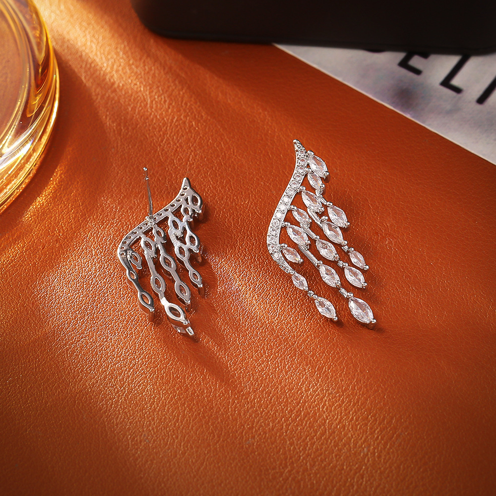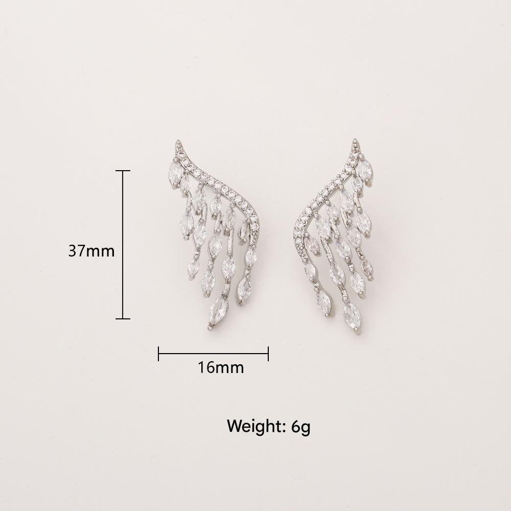 Befestiger Zirkonia Messing Ohrring, mit kubischer Zirkonia, Engel, Flügel,, plattiert, Modeschmuck & für Frau, Silberfarbe, verkauft von Paar