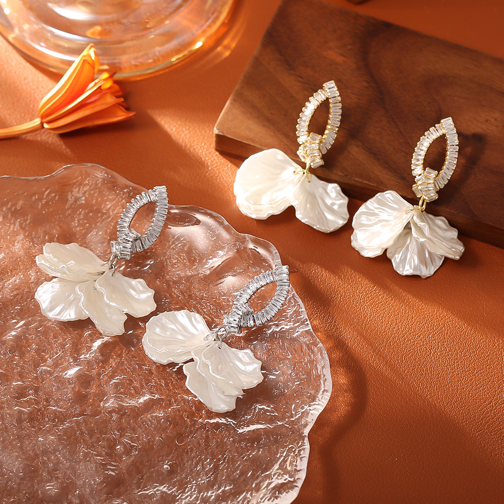 Befestiger Zirkonia Messing Ohrring, mit Muschel, plattiert, Modeschmuck & Micro pave Zirkonia & für Frau, keine, verkauft von Paar