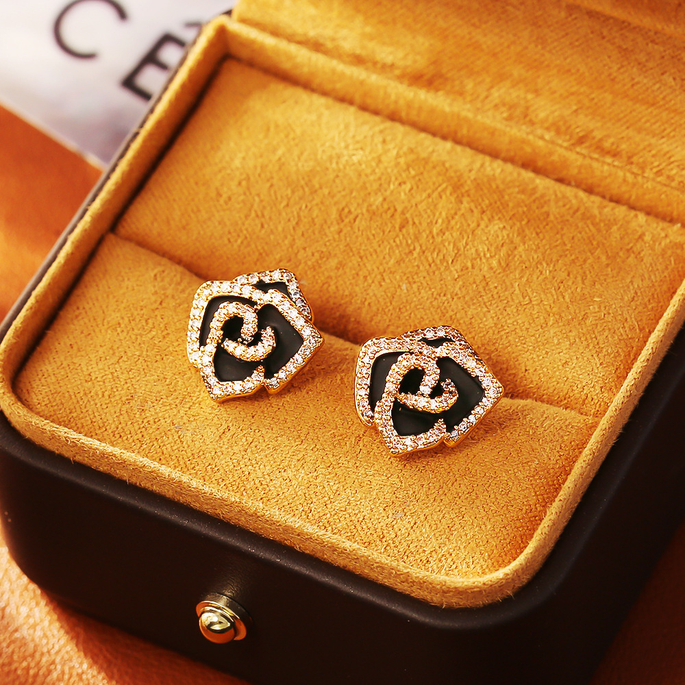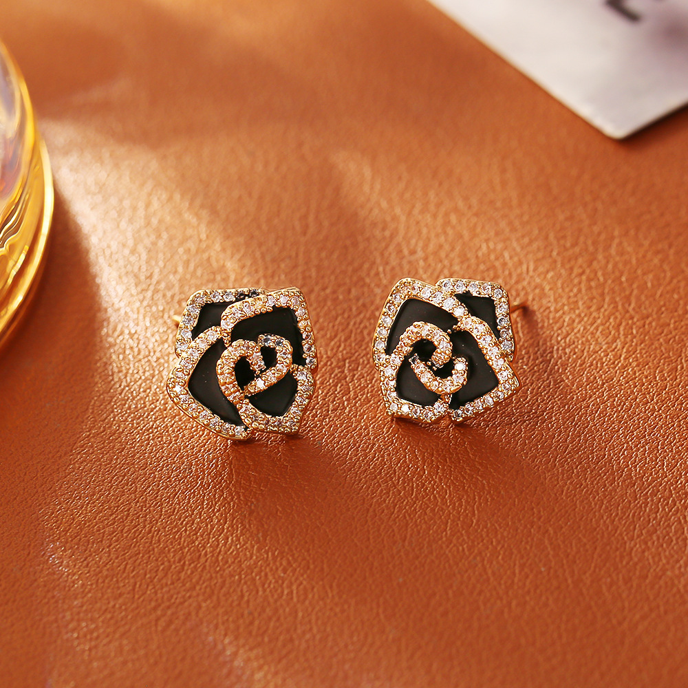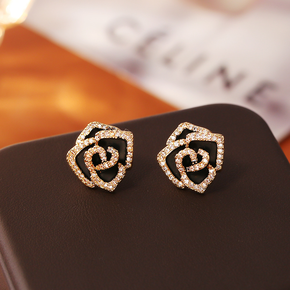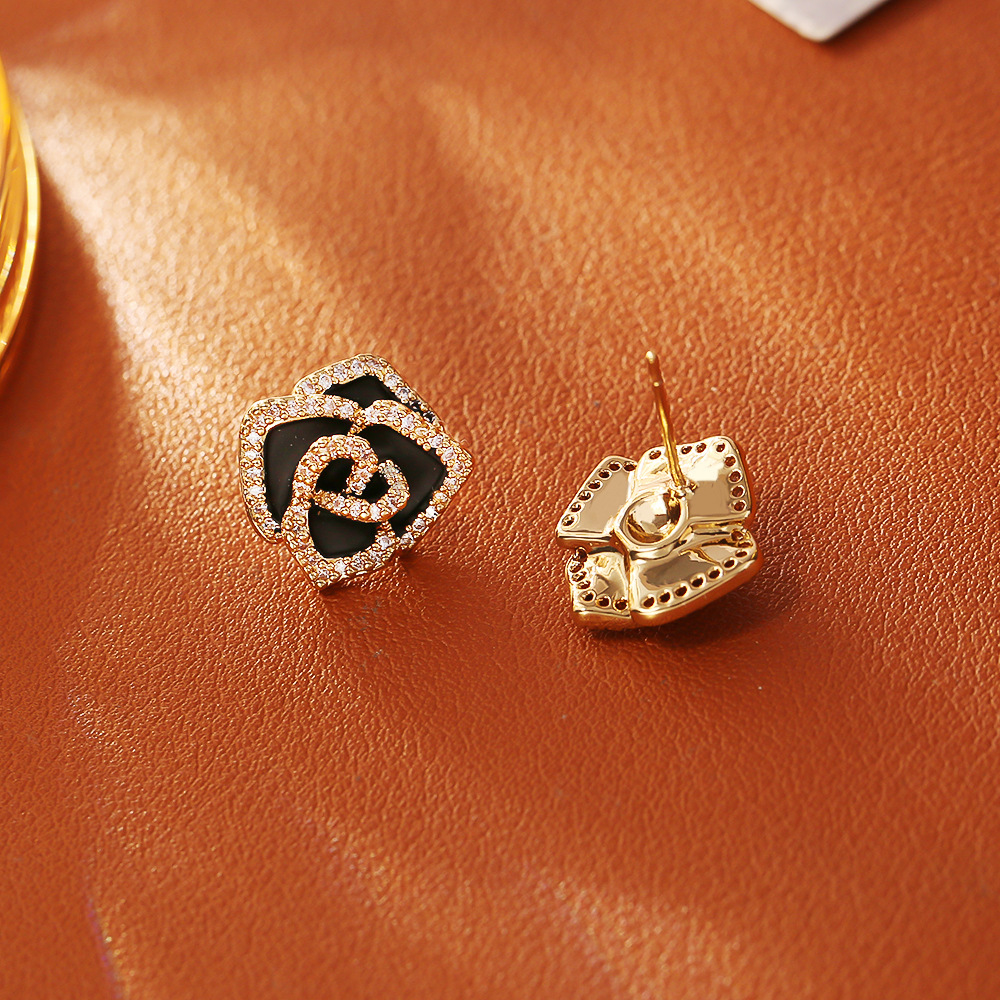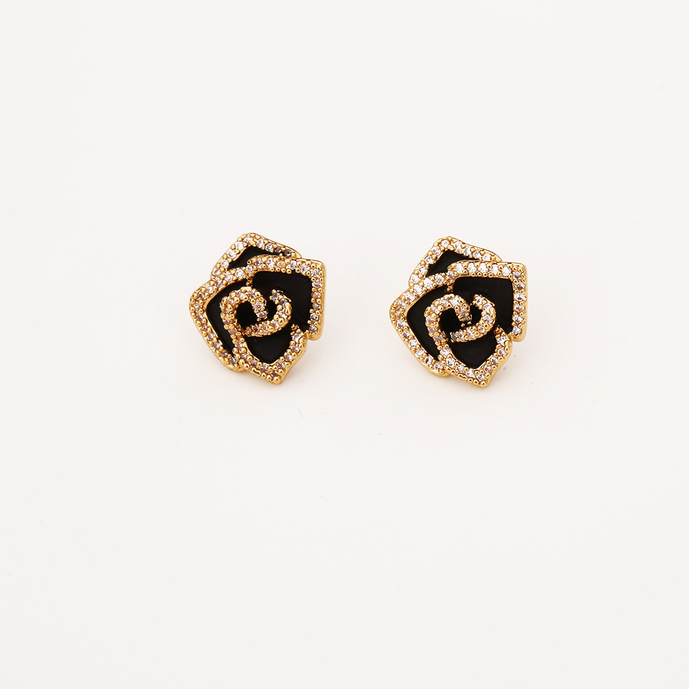 Befestiger Zirkonia Messing Ohrring, Blume, vergoldet, Micro pave Zirkonia & für Frau & Emaille, verkauft von Paar