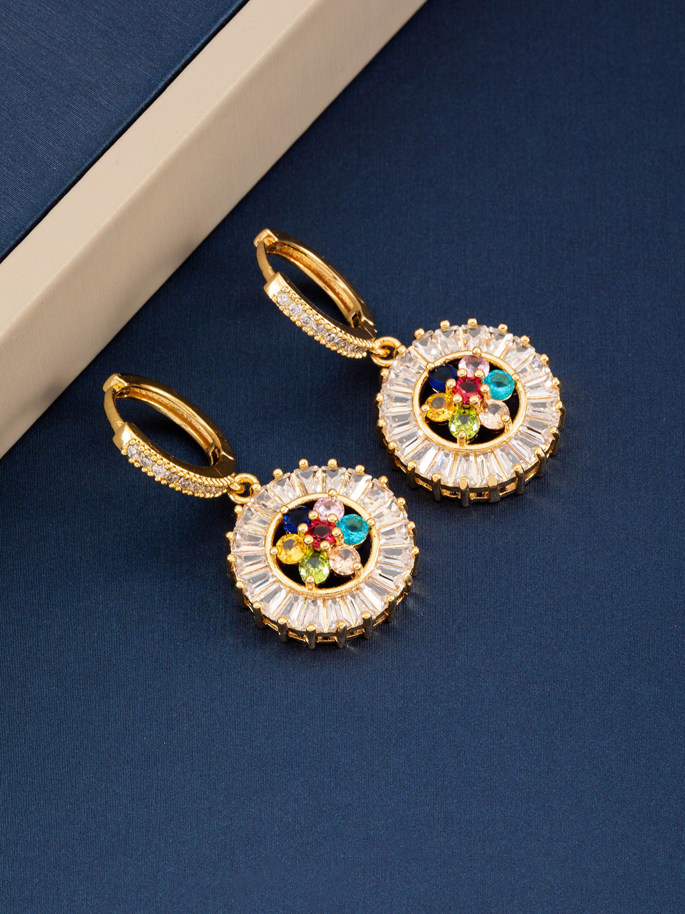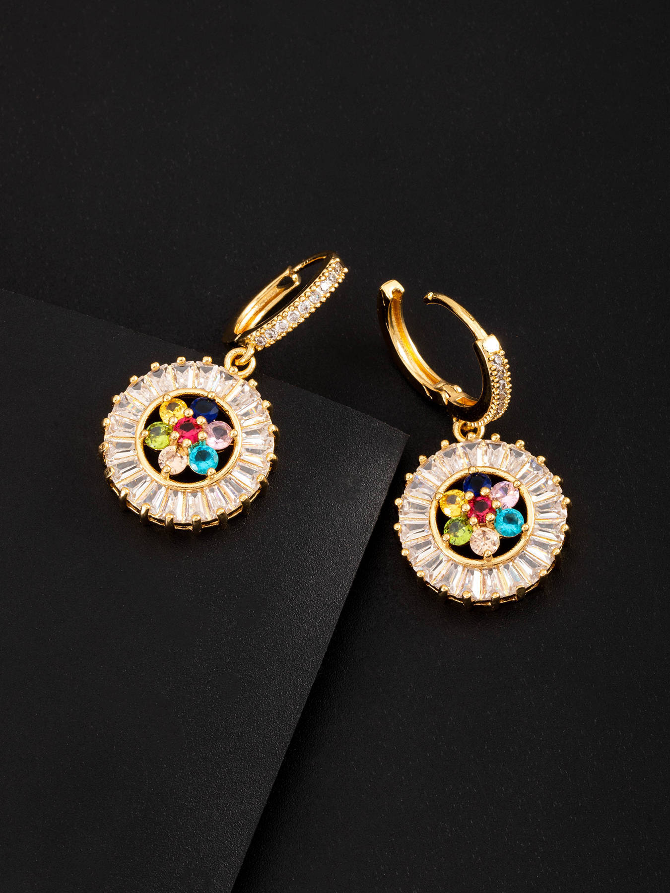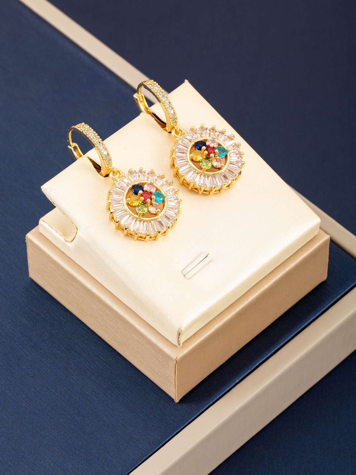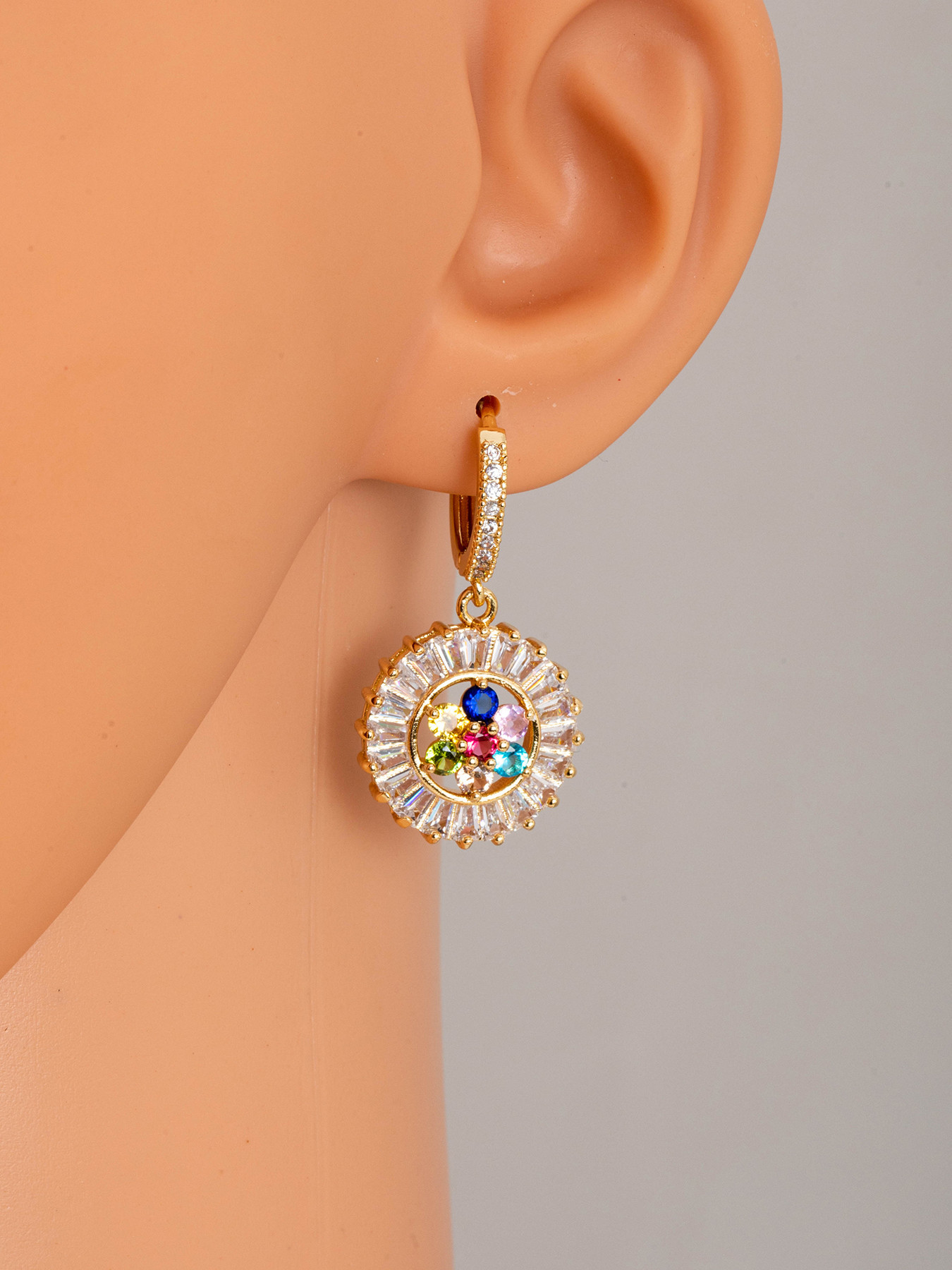 Befestiger Zirkonia Messing Ohrring, Blume, plattiert, Modeschmuck & Micro pave Zirkonia, gemischte Farben, verkauft von Paar
